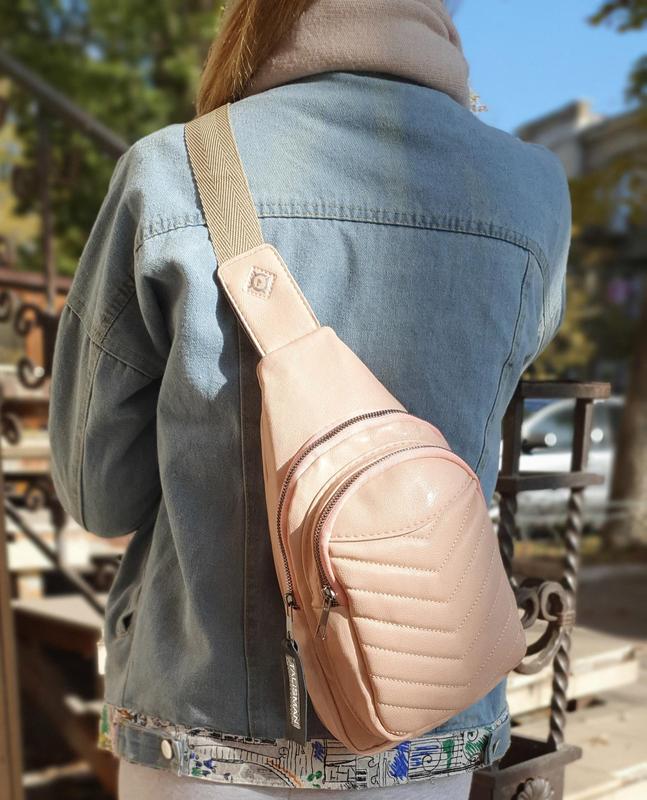 Новинка в асортименті компанії TALISMAN - невеликий рюкзак на плече 1 - SlingBag (слингбэг) об'ємом 7 літрів. Виконаний з якісної еко шкіри, має 2 окремих кишені на блискавці, є міцна не линяющая підкладка (oxford 210puwr) і 1 внутрішній кишеню (у великому основному відділенні). Міцна блискавка; змінна по довжині плечовий стропа - шлея. --- Характеристики: Висота - 25см, Ширина - 15см Глибина - 8см Обсяг - 7л Ширина плечової стропи - 4см --- Доступні кольори - червоний, чорний, пудра, темний металік