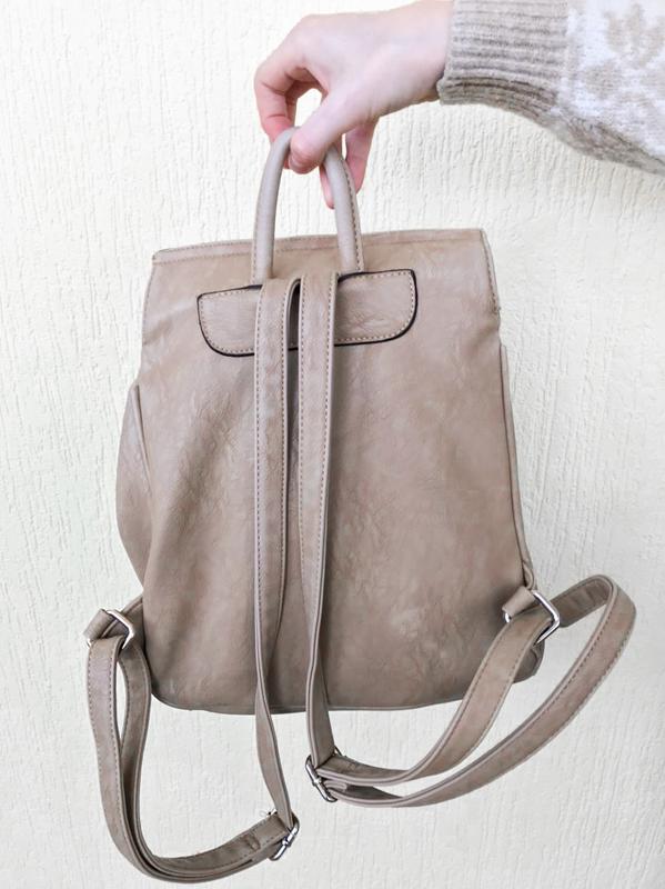 Стан видно на фото (на 2 фото знизу є плямка, на 5 і 6 фото видно стан країв). Колір такий, як на першому фото. Розміри: 25×30×11 (в рюкзак багато чого поміщається) Фурнітура та матеріал якісні, замочки робочі, є 3 кишені всередині, можна регулювати ширину рюкзака за допомогою защіпок по боках.
