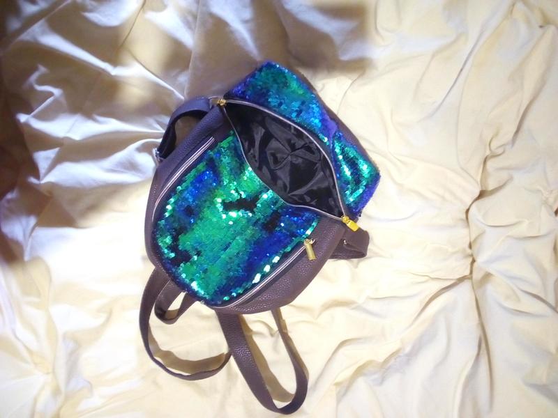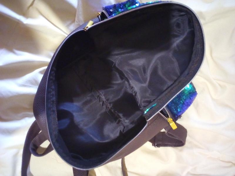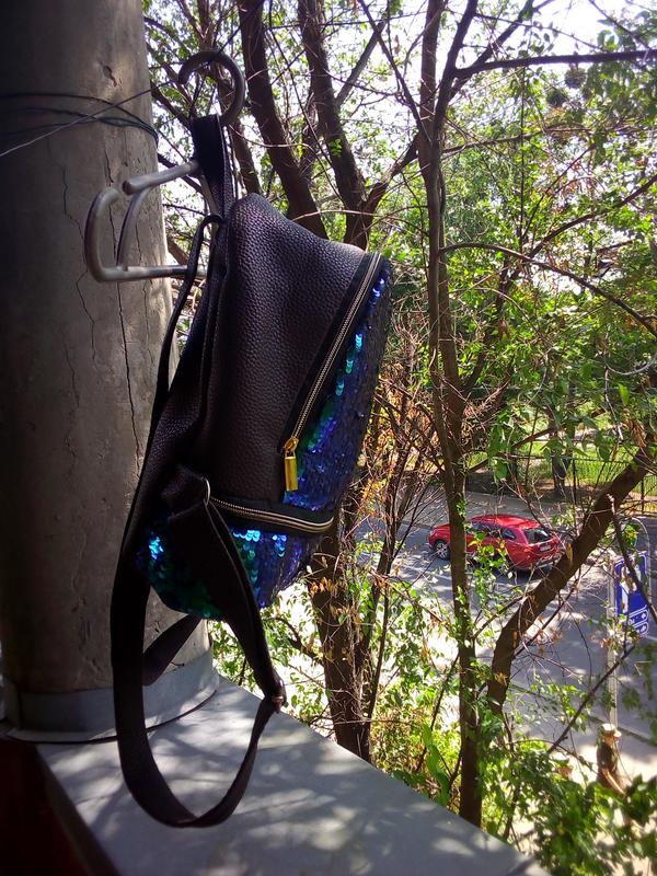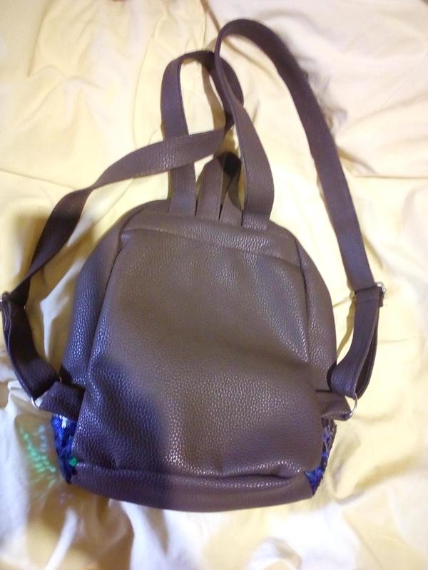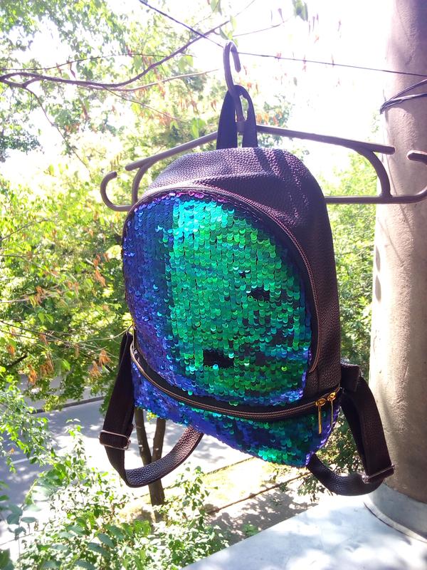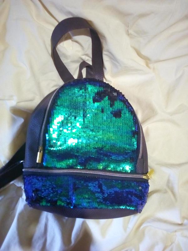 рюкзак жіночий новий 28×22×10, паєтки, переливається, тому на фото плями. насправді дуже симпатичний .