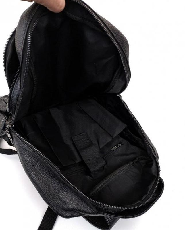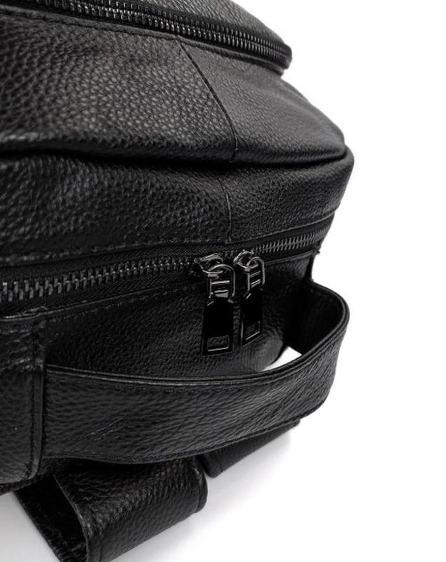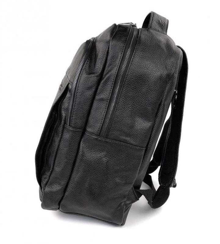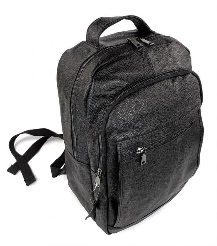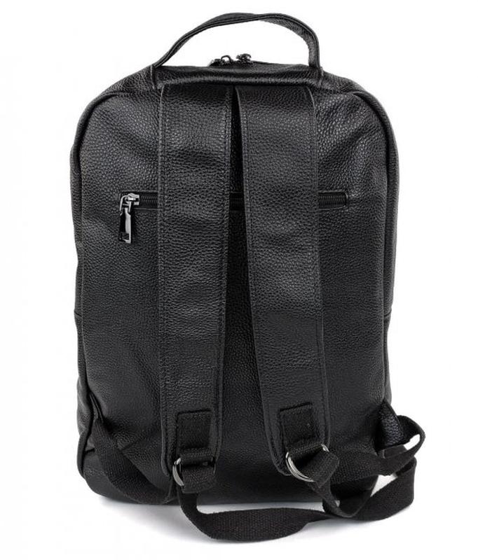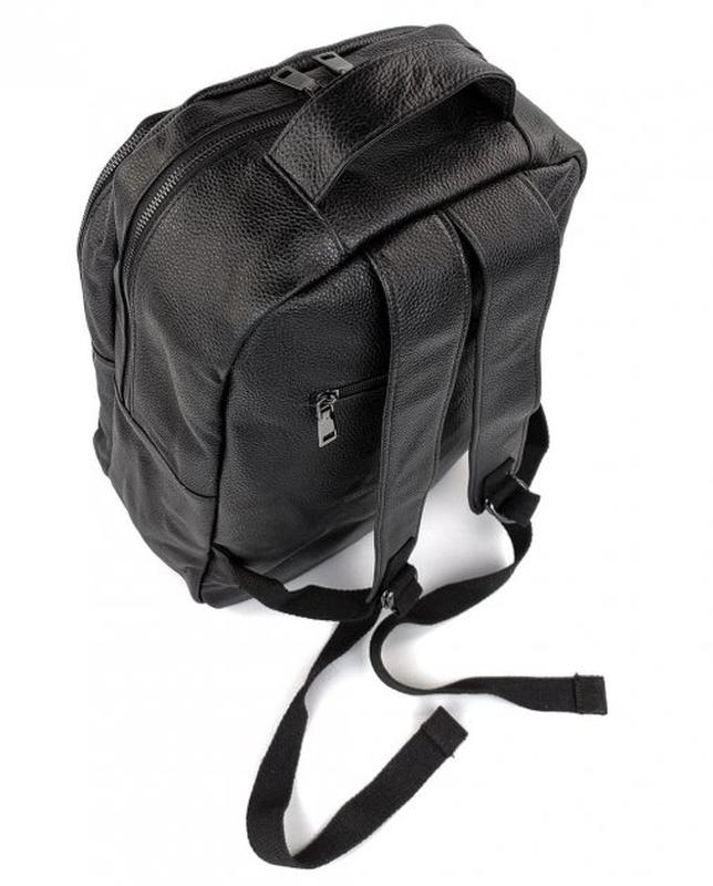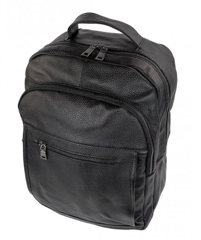 Місткий рюкзак виготовлений з якісної натуральної шкіри із застосуванням надійної фурнітури. Шкіряний рюкзак має дві зручні регульовані шлейки, які дозволяють носити його на спині. Так само, рюкзак з натуральної шкіри має зручну ручку для його носіння в долоні. Шкіряний рюкзак має два відділення, які закриваються за допомогою блискавок. На тильній стороні рюкзака розташований кишеню, закривається за допомогою блискавки. На лицьовій частині рюкзака розташований ще один кишеню, який також закривається за допомогою блискавки. Розмір 40 х 28 х18 см
