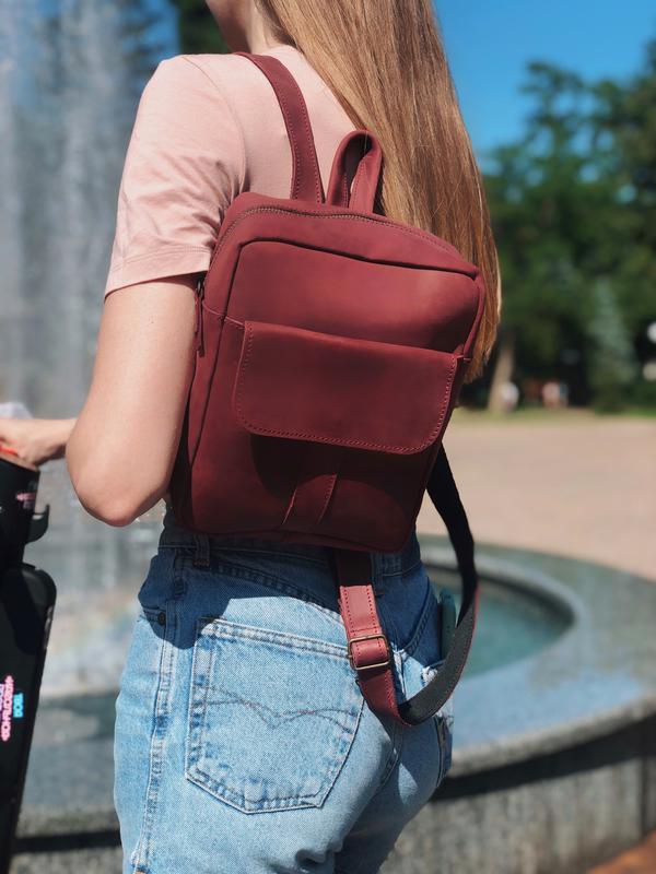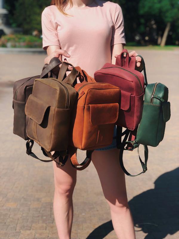 💚 Ручна робота. 💚 Натуральна шкіра. 💚 Одне велике відділення на блискавці з перегородкою і кишенею для мобільного. 💚 Спереду і ззаду - додаткові відділення на блискавці і на магніті. 💚 Регульовані ремені обшиті шкірою 80 див. 💚 Шкіряні перегородки. ⠀ 📏 Розмір рюкзака (см): 23*19*8 💵 Ціна рюкзака - 1499 грн ⠀ 🎁 Гравірування безкоштовно 📦 Швидка доставка в будь-який