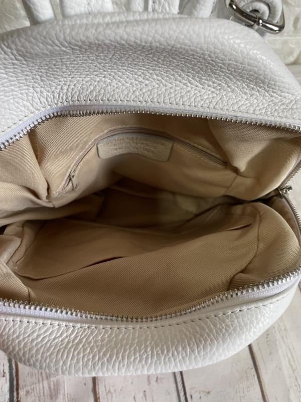 Одне загальне відділення, підкладка з тканини бежева, є кишенька на блискавці та відкрита кишенька (на телефон). Довжина лямок регулюється.