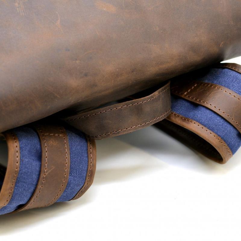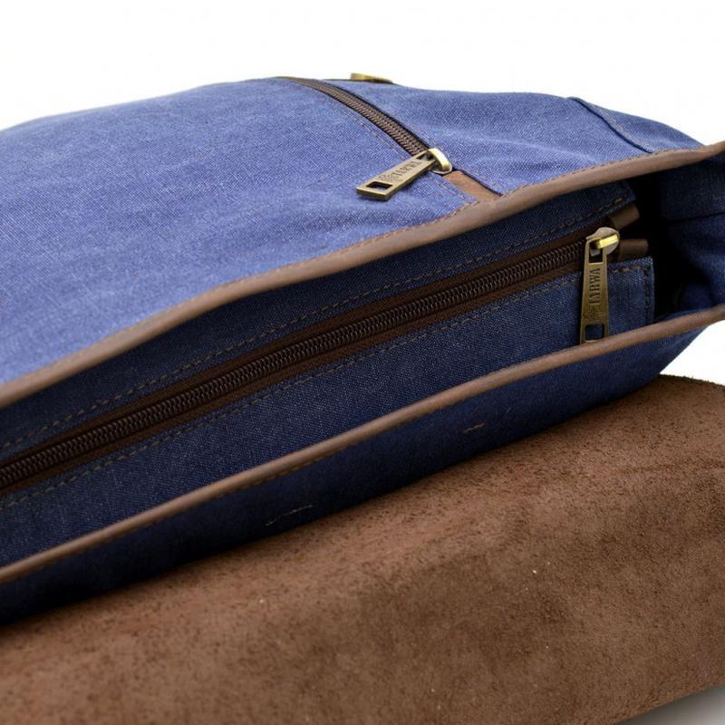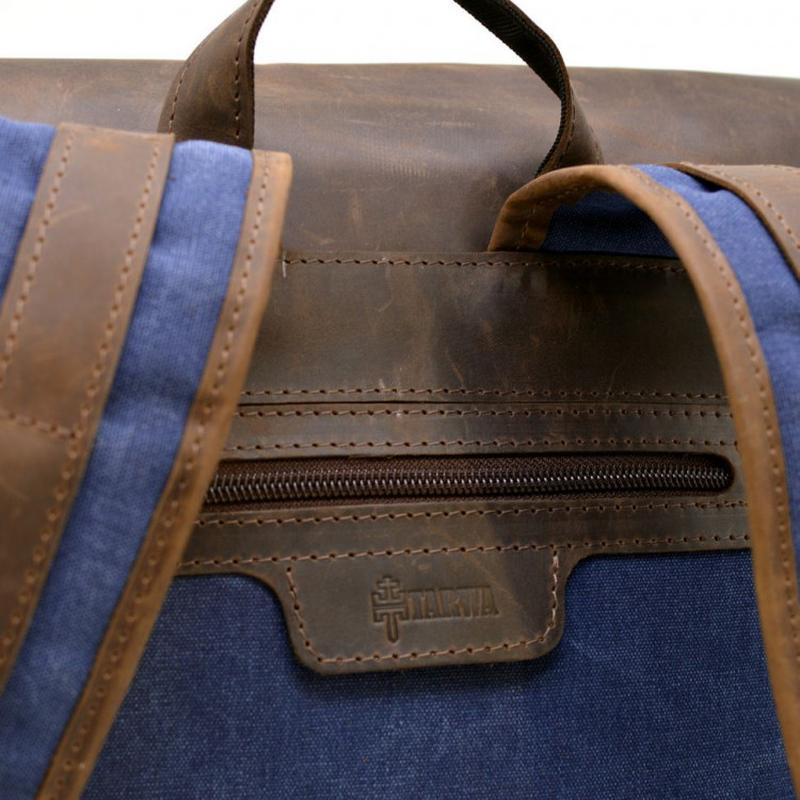 Молодежный рюкзак на две шлейки, парусина+кожа RК-3880-3md от бренда TARWA. Изделие выполнено из очень плотной ткани с элементами кожаных вставок, клапаном из лошадиной кожи, тканевой подкладкой. Внутри рюкзак имеет одно большое отделение, в котором есть карман-разделитель с молнией под разные гаджеты, и карман поменьше для мелких предметов, также с молнией, и два накладных кармана. На лицевой стороне аксессуара вертикальная молния-карман. Рюкзак застегивается на молнию и сверху накрывается клапаном, имеет широкие удобные шлейки.