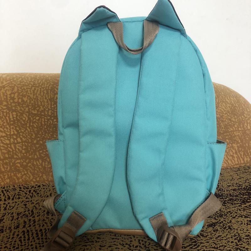 Рюкзак для дівчинки ніжно бірюзового кольору вз рожевими вушками. З зовні велика кишеня на блискавку спереду та дві бокові. Всередині ще одна велика кишеня. Відмінний стан.