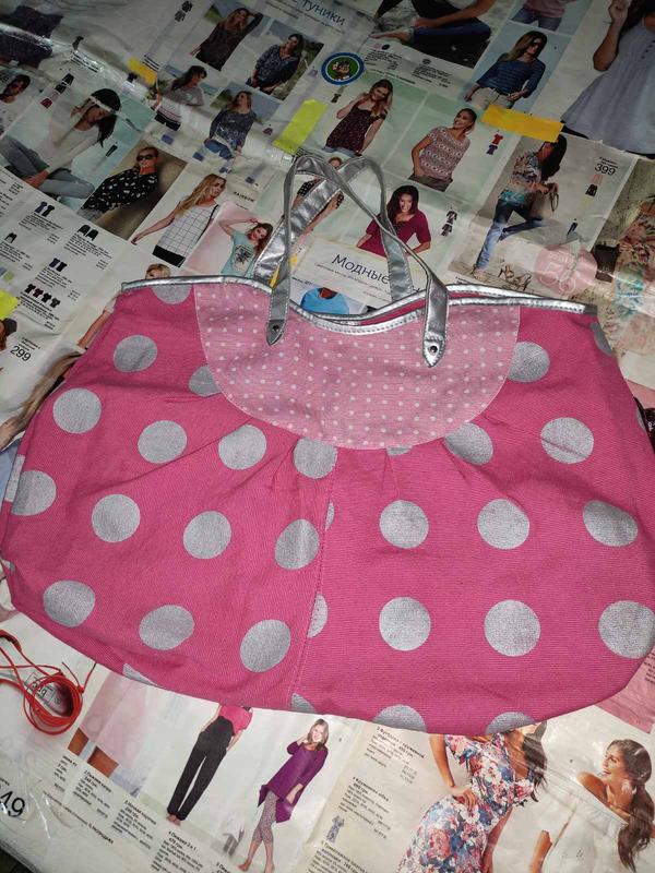 Сумка пляжна , шопер "Dorothy Perkins" , рожево сіра в горохи , коттон , 51* 37 см , стан ідеальний.