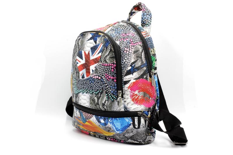 Молодежный стильный рюкзак среднего размера из мягкого кож-зама. Стильний жіночий рюкзак виготовлений з щільного якісного шкір-заступника. Аксесуар має яскравий привабливий вигляд і зручний у використанні. Рюкзак містить один об'ємний відсік який закривається замком блискавка. Всередині відсіку - м'яка підкладка На лицьовій стороні розташований великий накладна кишеня з замочком блискавка, вбудований кишеня з замочком блискавка також розташований в нижній частині рюкзака. Зручний аксесуар для відвідування спортивний секцій, занять у школі, коледжі і т. д. або просто для прогулянки. Особливість пропонованого аксесуара - яскравий абстрактний малюнок, поверхня з тисненням під рептилію. Жіночий рюкзак міський обладнаний регульованими плечовими лямками з текстилю. Для розміщення рюкзака на вішалку або для зручності носіння в руці передбачена петля з щільного шкір-заступника. Розмір аксесуара: висота - 30 см, ширина - 26 див., (по дну), глибина 14 див., (дном)