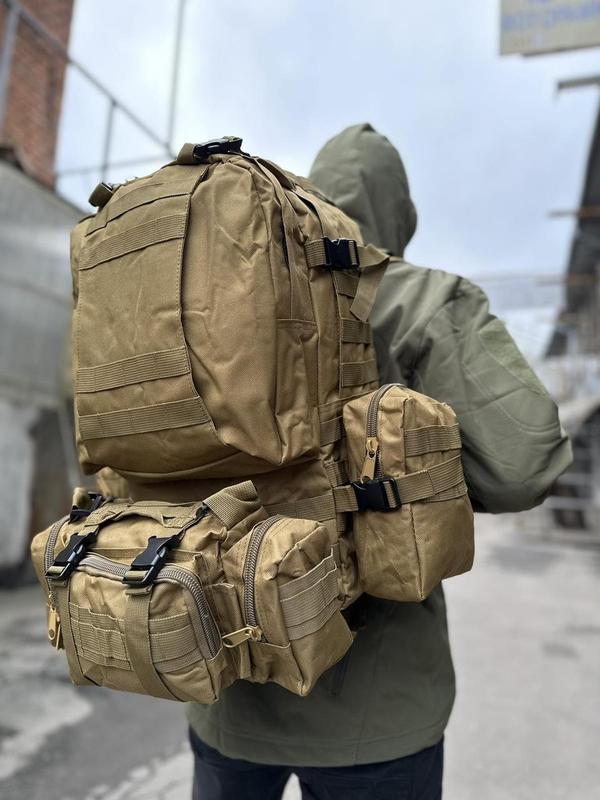 Великий армійський тактичний рюкзак 55 літрів. койот