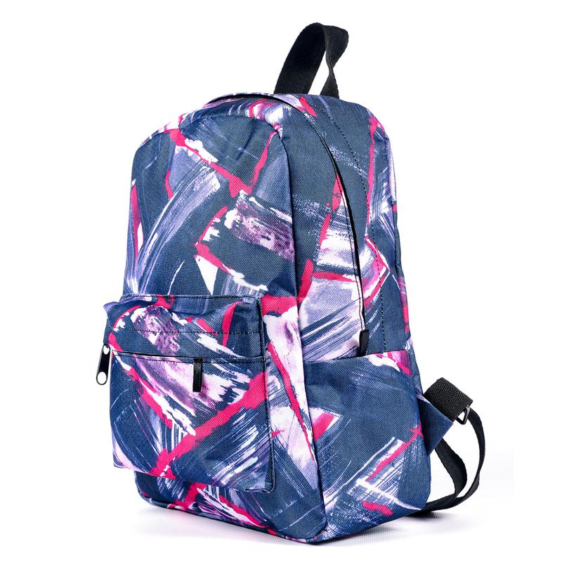 Молодежный практичный городской женский рюкзак с абстрактным принтом. Размеры: высота - 31 см., ширина - 24 см., глубина - 8 см., объем 7,5 л. Универсальный городской рюкзак повседневного назначения. - Выполнен из прочной сумочной ткани Oxford с абстрактным рисунком. - Вместительное внутреннее отделение застегивается на "молнию" с двумя бегунками под защитным клапаном. - Объемный накладной карман на "молнии". - Два наплечных ремня, длина регулируется. Удобная ручка для переноски. Классическая практичная модель, которая подойдет для учебы, работы, прогулок, спорта.
