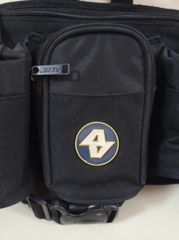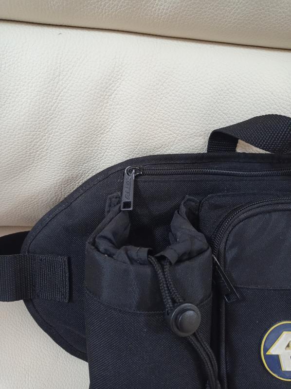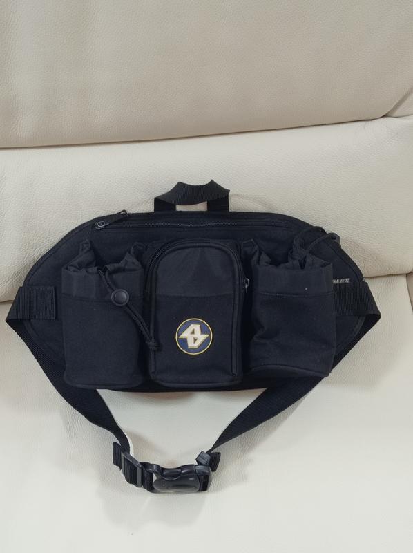 В чудовому стані сумка-пояс Alex чорного кольору. Є два кармани для пляшки та два кармани на змійці. Розміри: ширина 42см, висота 21см.