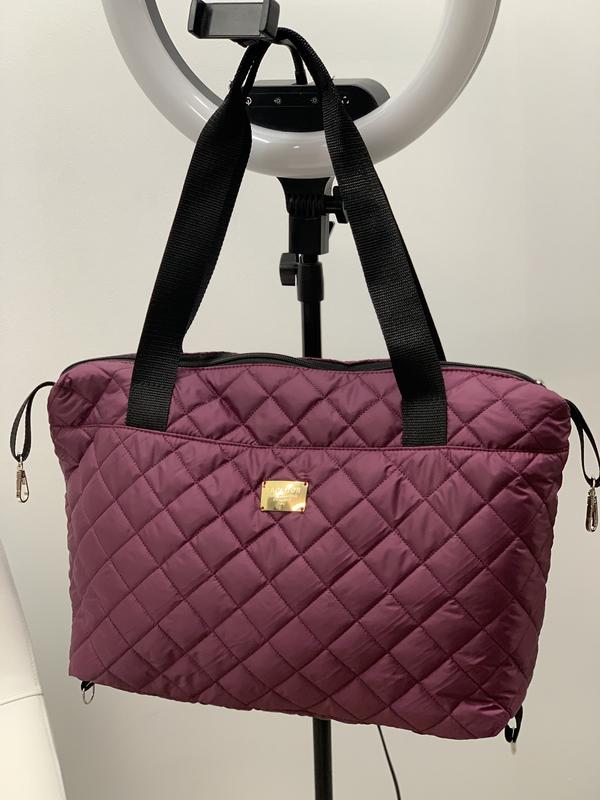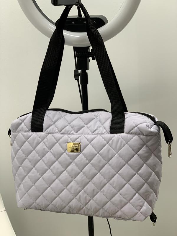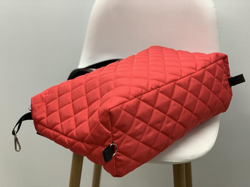 Сумочки стёганые на двух ручках,по бокам застёгивается на карабины;Внутри одно большое отделение+открытый карман;Размер длина:37 см; ширина:15 см; высота:31 см;Цвета: чёрный,синий,бордовый,красный,светло-серый;
