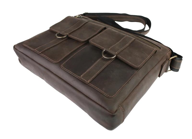 Ділова шкіряна чоловіча сумка для документів А4 офісна велика горизонтальна