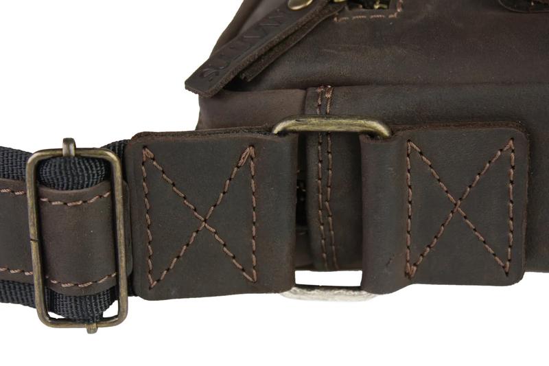 - Регульований плечовий ремінь обшитий шкірою;