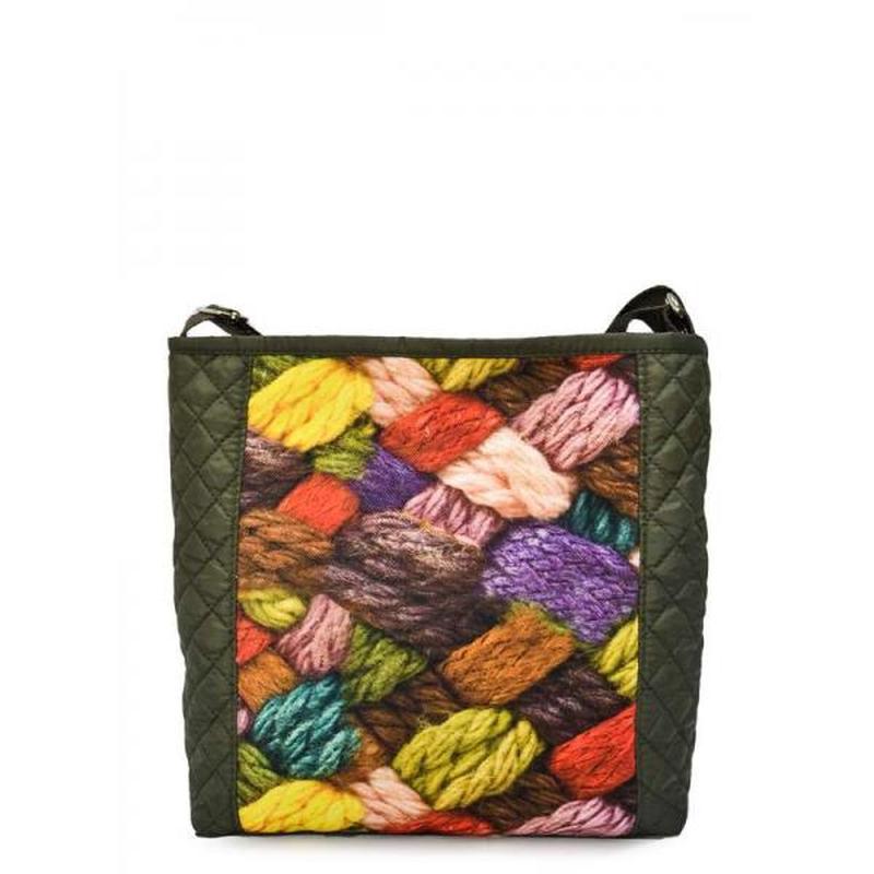 Детали : Регулируемый плечевой ремень длиной от 700 мм до 1400 мм из декоративной стропы в тон принта; одно основное отделение на молнии,