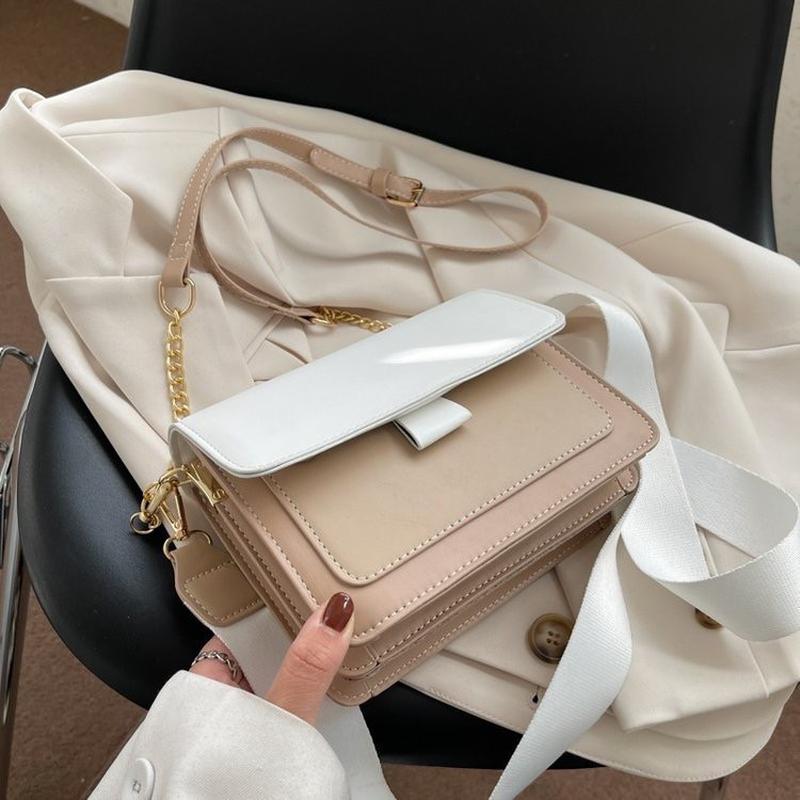 Сумочка має два ремінці - один широкий короткий, другий з ланцюжком який