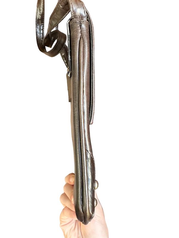 З дефектів: є подряпинка і мінімальні потертості (все видно на фото), також немає підкладки - вона не підлягала відновленню, але без неї - дуже аккуратна, вмістка сумка