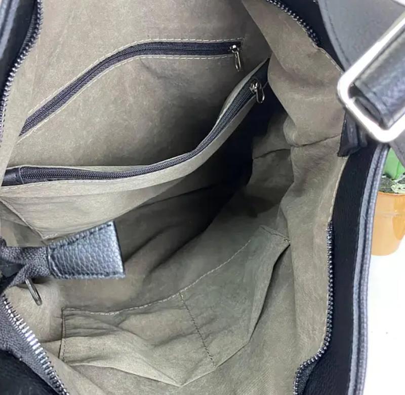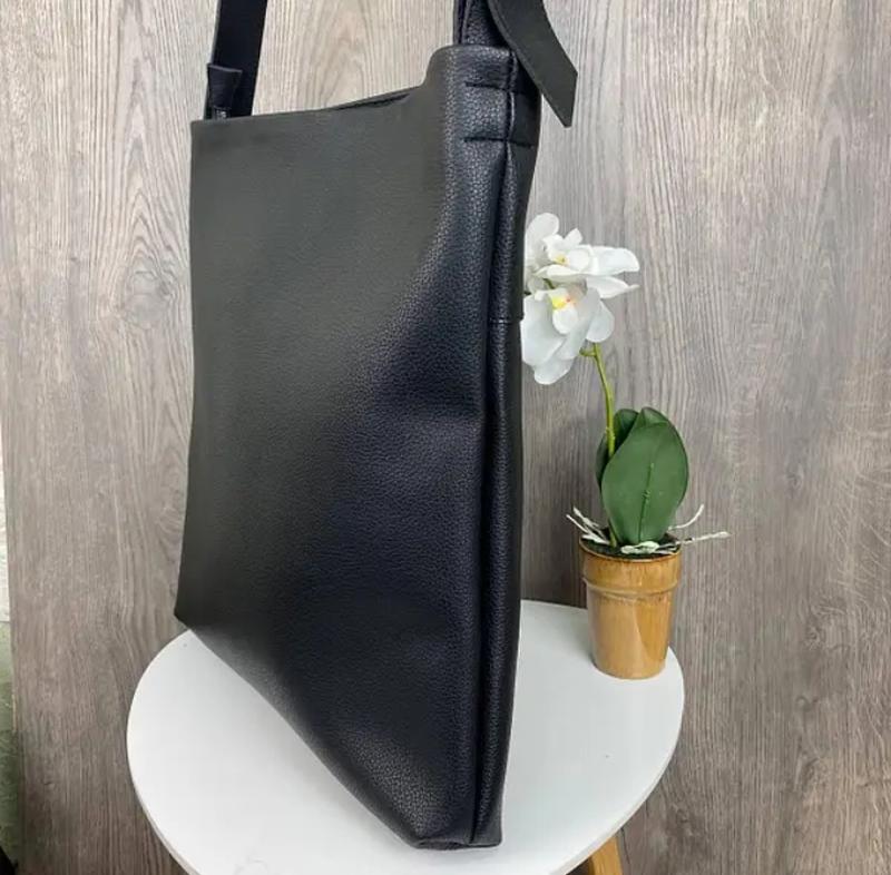 Велика жіноча сумка класична чорна формат А4, якісна та містка сумка для документів Характеристики: Велика та містка сумка, ідеальний варіант для папки з документами, планшета або навіть невеликого ноутбука, гідний аналог портфеля для документів у вигляді модної жіночої сумки. Матеріал: високоякісна екошкіра (м'яка, без зайвого запаху); Якісний приємний підклад (не поліестер); Довжина: 34 см; Глибина: 4 см; Висота: 41 см; Якісна металічна фурнітура.