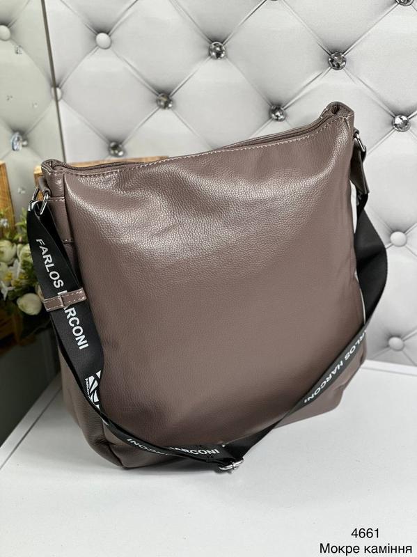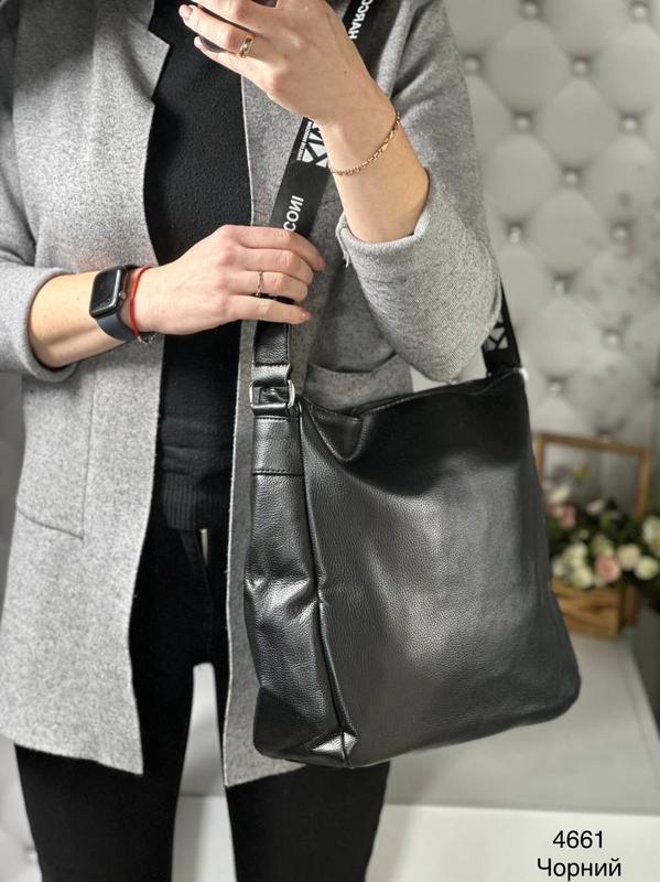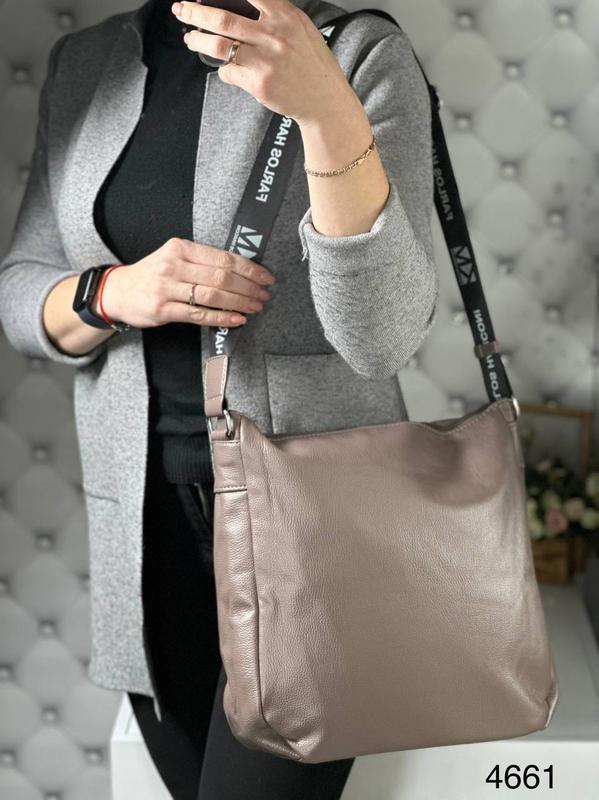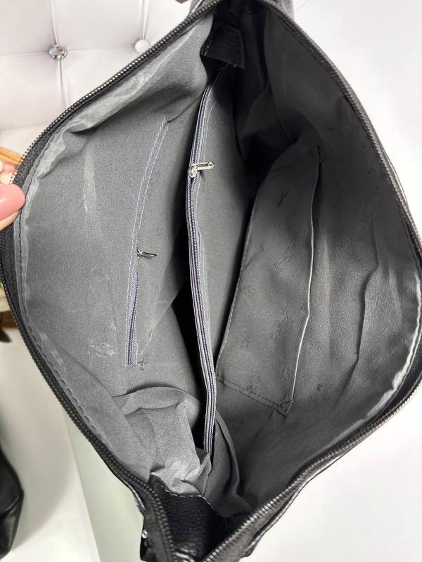 Екошкіра 32х34х12125 см довжина регульованої ручки.Одне відділення, розділене навпіл відділенням на блискавці. Всередині кишеня для телефона та кишеня на блискавці. На звортному боці кишеня на блискавці.