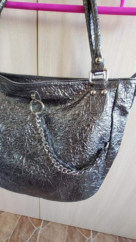 Шанувальники великих сумок, не пропустіть! Гарна, містка сумка, виробництво Італія. Прекрасно якість, модний сталевий колір, ціна знижена! Розмір 40х30х10, довжина ручок 60 см.