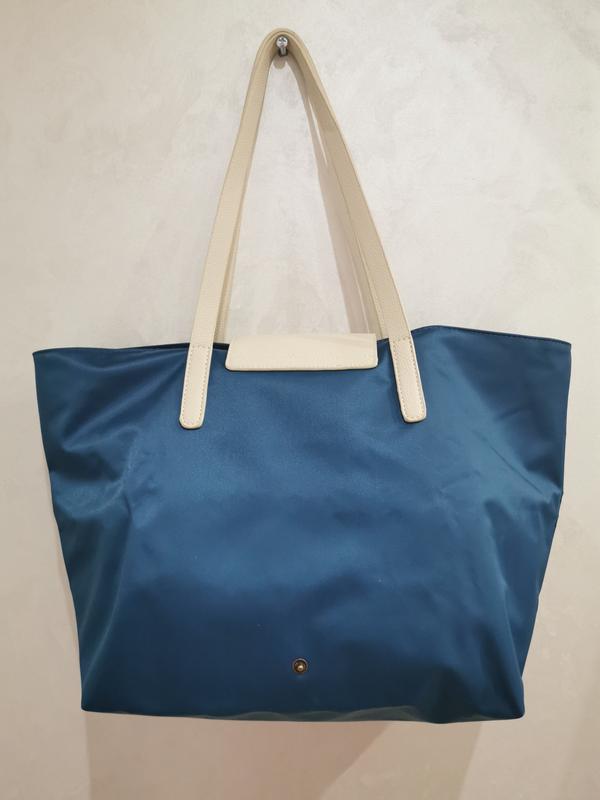 Складная нейлоновая сумка на молнии для покупок в отличном состоянии размерами: Ширина низа-29см.ширина верха-45см,высота-27см.