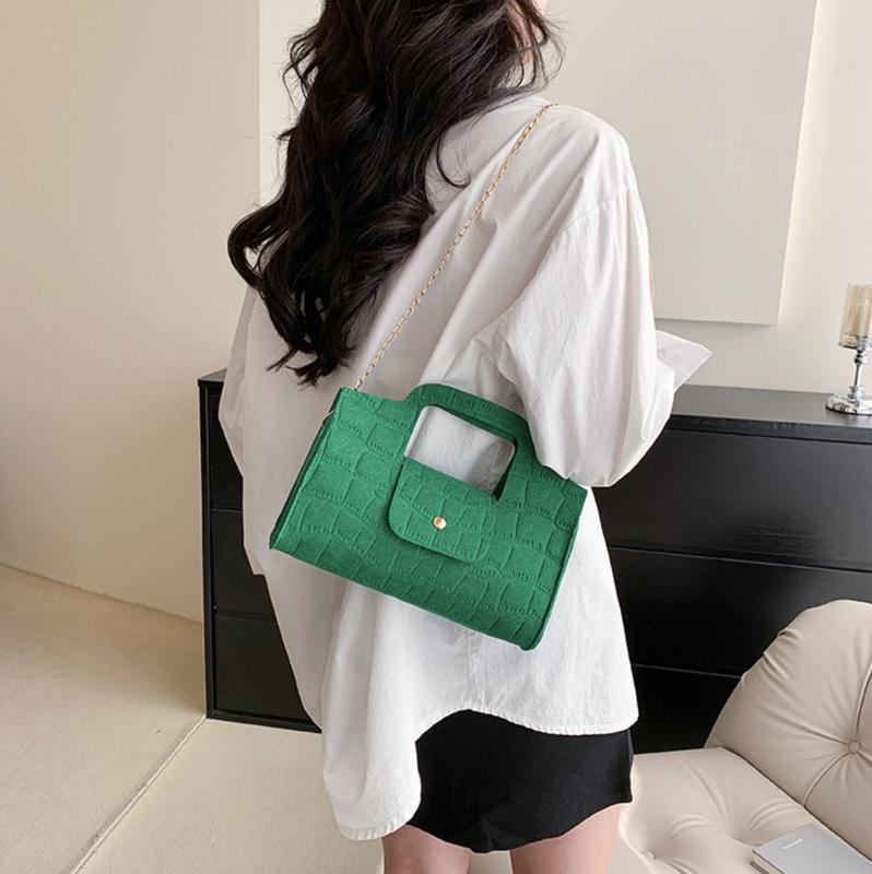 Яскрава зелена сумка під замшу з ремінцем ланцюжком