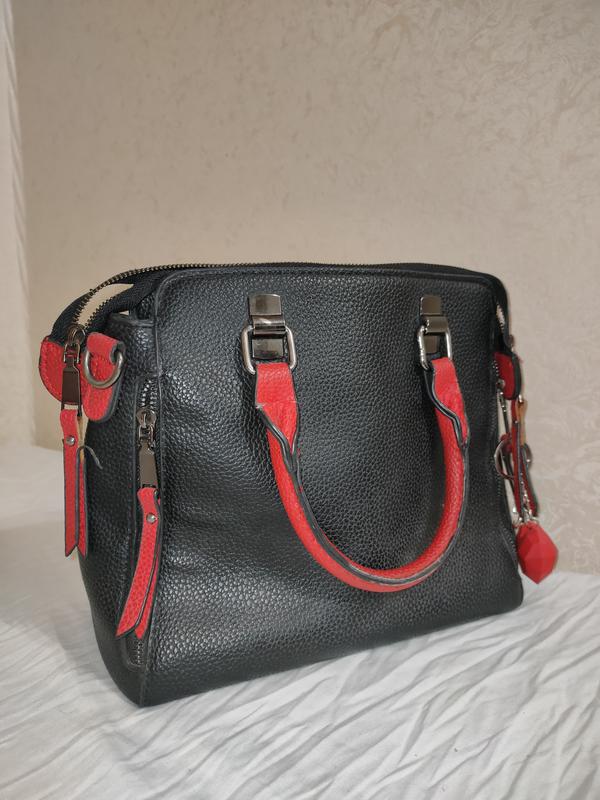 сумка у хорошому стані, має три великих відділення, довгий ремінець у комплекті, з мідкладкою, матеріал цупкий. Недоліків на шкірі немає. Фабричний Китай