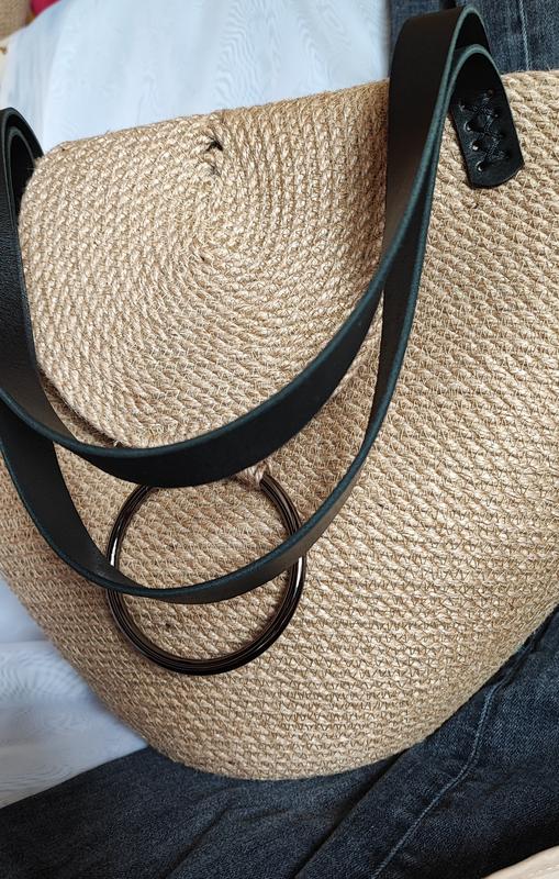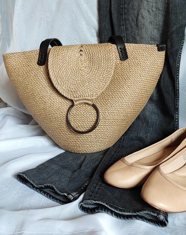 Must have цього літа сумка з джуту зі шкіряними ручкамишикарний клапан з кільцем - ультрамодна деталь сумки
