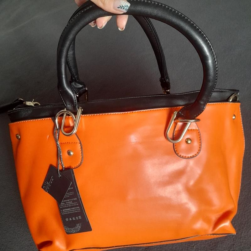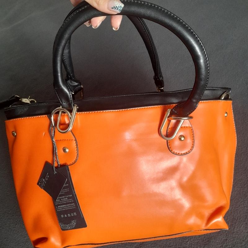 Якісна щкіряна сумка на довгій ручці ( чорна, оранжева)