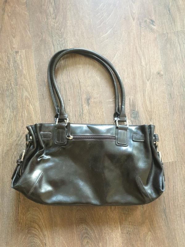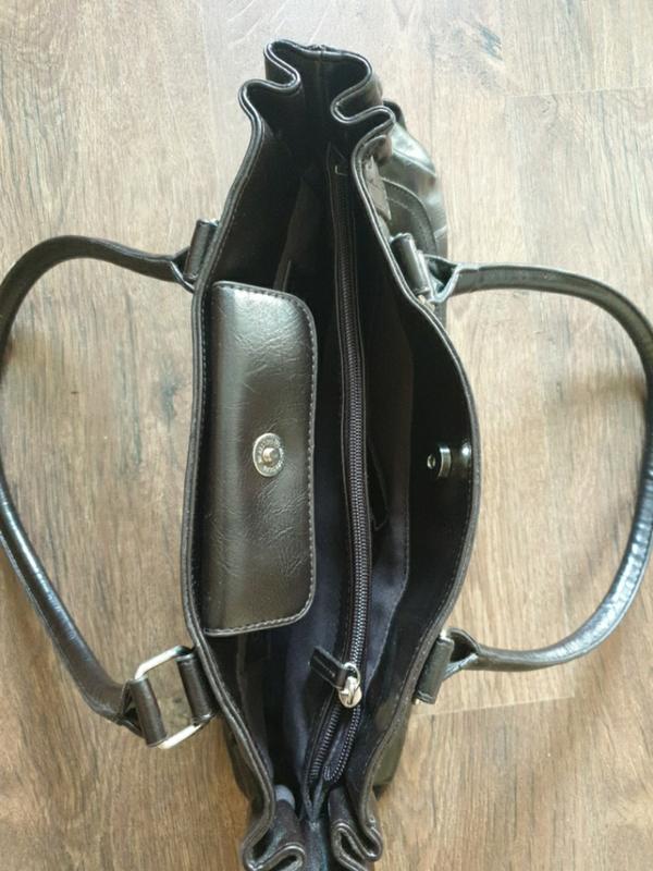 стильна коричнева ( майже чорна ) сумка, англійського бренду fiоrelli, стан нової, всередені 2 великих відділення, по середені додаткове на змійці, є маленьке збоку на змійці і два кармани для телефонів, сток