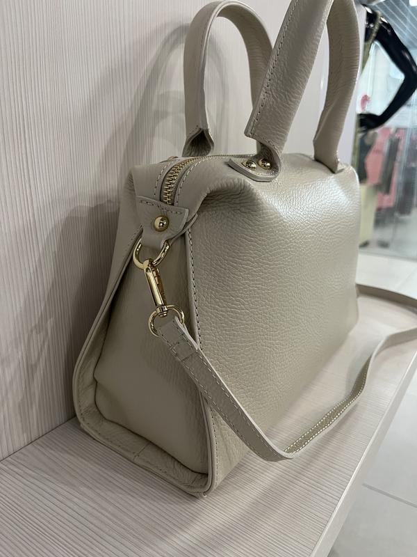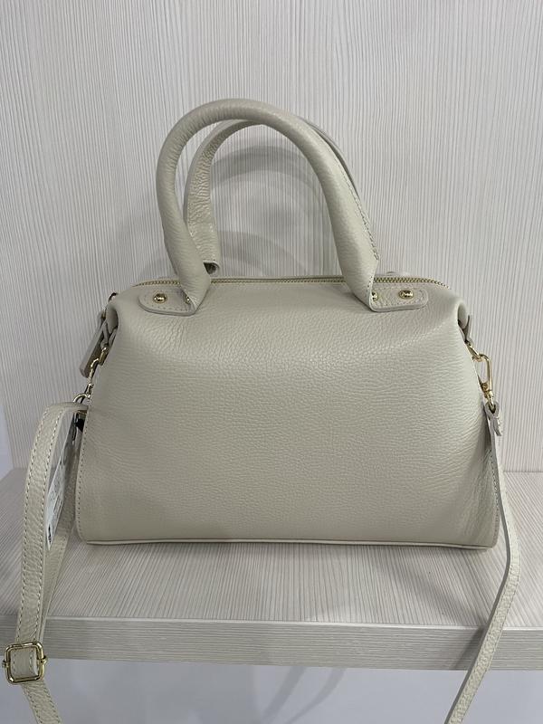 Стильна ділова сумка саквояж. Стриманий вишуканий дизайн, невелика, але містка. Базовий світло-бежевий колір шкіри, фурнітура «золото».