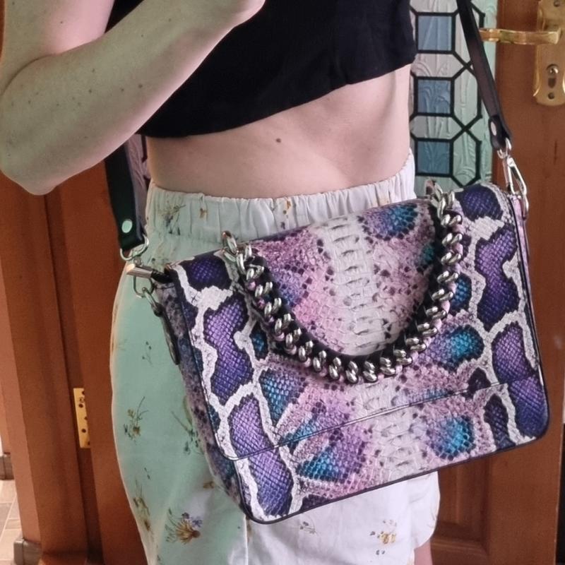 Шкіряна сумка кросбоді, сумка зміїний принт, брендова кросбоді, сумка італія