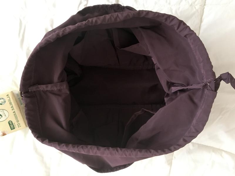 шнуровка - как длинные ручки , на плече/ или завязываю за них на / сумку дорожную, чемодан, коляску, под рукой все мелочи , по периметру вокруг карманы - отсеки. На любой прогулке - с собой, налегке, вмещает и бутылку воды, и спорт форму тренировочную 😉