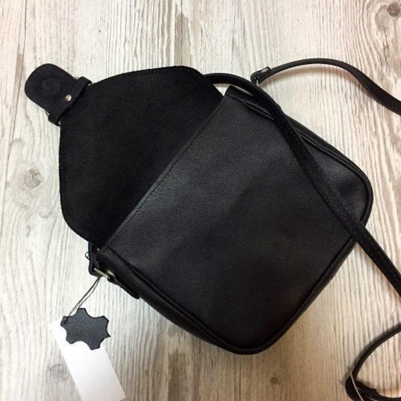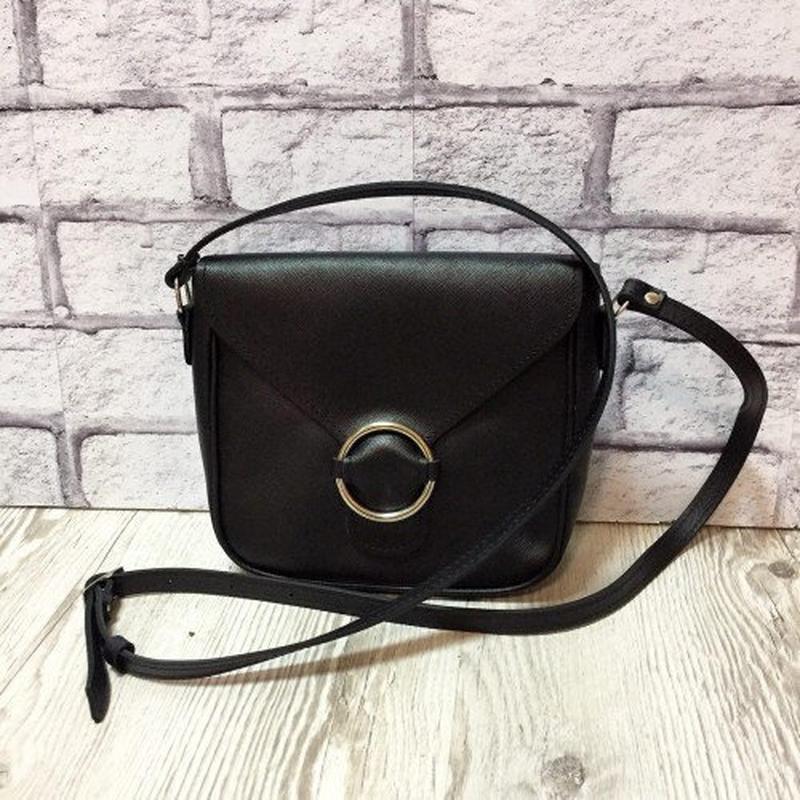 Матеріал: натуральна шкіраРозмір, см: 22*6*21Сумка закривається на блискавку та магніт, кільце виконує декоративну функціюУсередині є кишеня на блискавціВнутри на подкладРегульована шлея через плечеКолір чорний