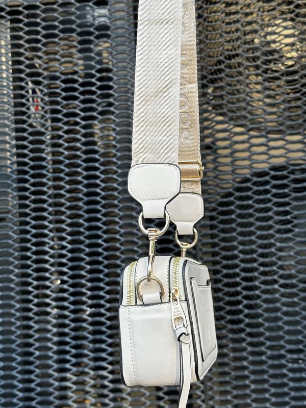 Ремінець Marc Jacobs текстильний на карабінах, шириною 5 сантиметрів і довжиною від 63 до 105 сантиметрів максимум.