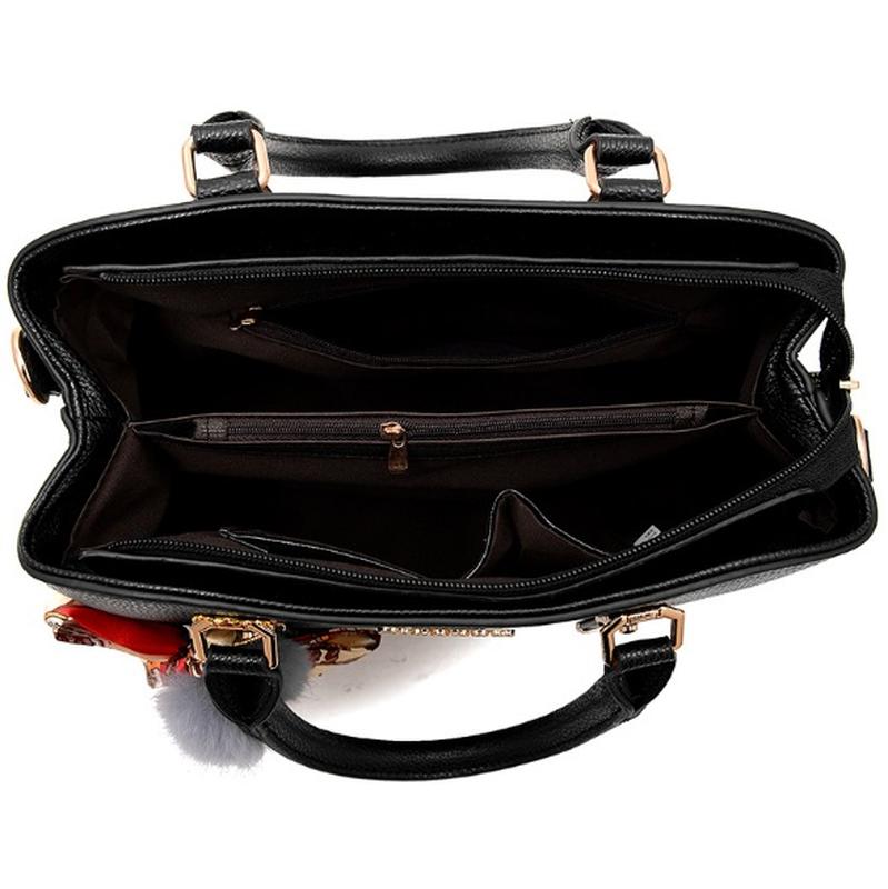 Матеріал: якісна ПУ шкіра, відмінно тримає форму;Є довга ручка на плече;Хутряний брелок в комплекті;Довжина: 31 см;Ширина: 13 см;Висота: 22 см;