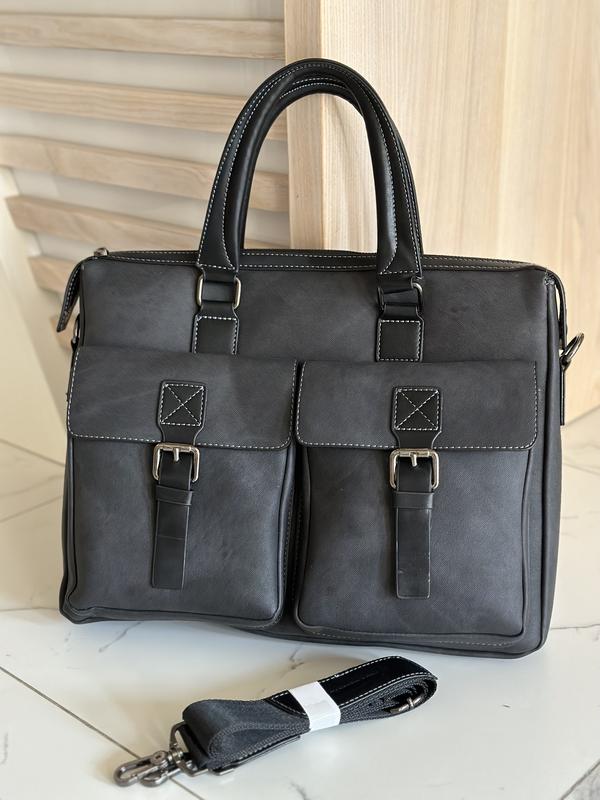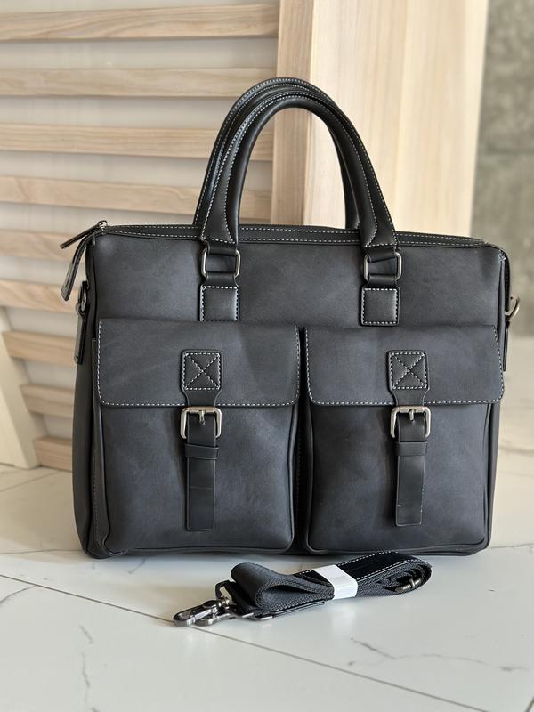 Описание: - основное отделение на молнии; - уплотненный карман для вашего гаджета на липучке размерами 34 на 20 см; - потайной карман на молнии внутри сумки; - накладные карманы на магнитных кнопках - карман на молнии на тыльной стороне сумки; - ручки для носки в руках; - текстильный ремешок на плечо. Деловая сумка под ноутбук. Сумка дополнена разными кармашками для вашего удобства. Изделие высокого качества. Внутри сумки качественная подкладка. В деловой сумке вы сможете также носить документы и папки А4. Изделие имеет современный дизайн с учетом всех модных тенденций. Аксессуар вы можете носить в руках и на плече. Деловая сумка станет неотъемлемым аксессуаром делового человека. С ней вам будет удобно ходить на встречи и собрания или ездить в деловые поездки и просто ходить на работу. Сумка станет лучшим подарком для любого мужчины.