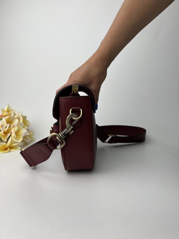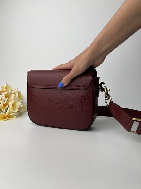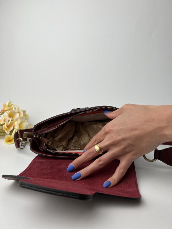 Сумка з натуральної шкіри в кольорі марсала на широкому ремені, буде радувати вас кожен день. Всередині одне основне відділення закривається на блискавку, також є додаткова кишеня на блискавці. Підійде як на прогулянку так і на кожен день.
