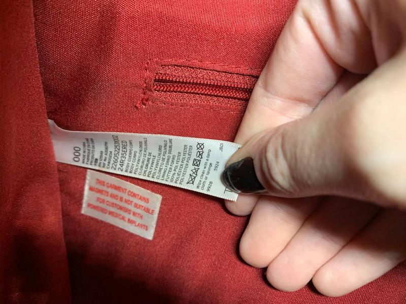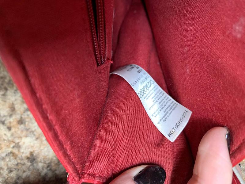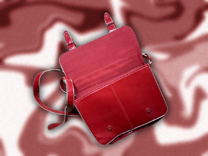 Червона сумка через плече в офіційному стилі, лоліта або анімешному. Зручна та доволі містка. Можна носити за ручку або на ремінці, що регулюється (можна носити як на плечі, так і через плече). Усередині є кишеньки: одна відкрита і одна на блискавці.