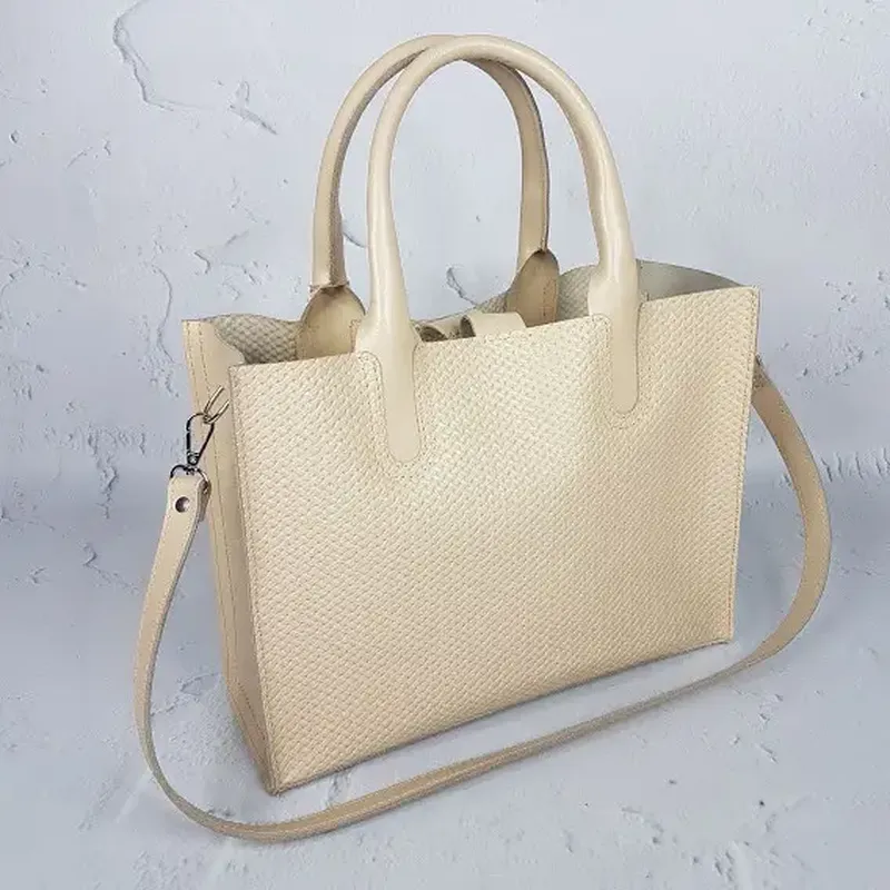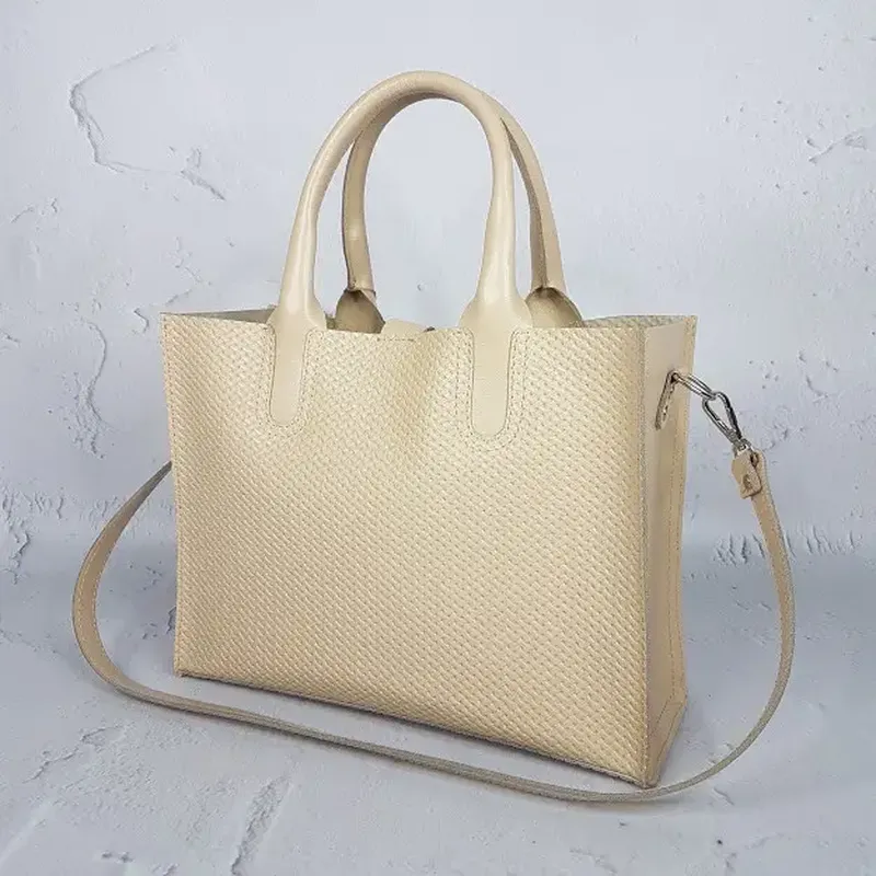 Елегантна сумка "СОЛО", виконана з натуральної шкіри найвищої якості. Сумка на підкладці. Всередині відкрита кишеня, можливо додатково зробити кишеню на блискавці. Закривається на блискавку і на магніт. Є дві короткі ручки і один довгий плечовий ремінь, який кріпиться за допомогою карабінів. Можливо вибрати фурнітуру: срібло/золото