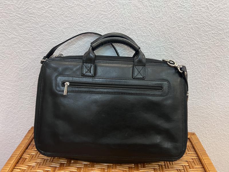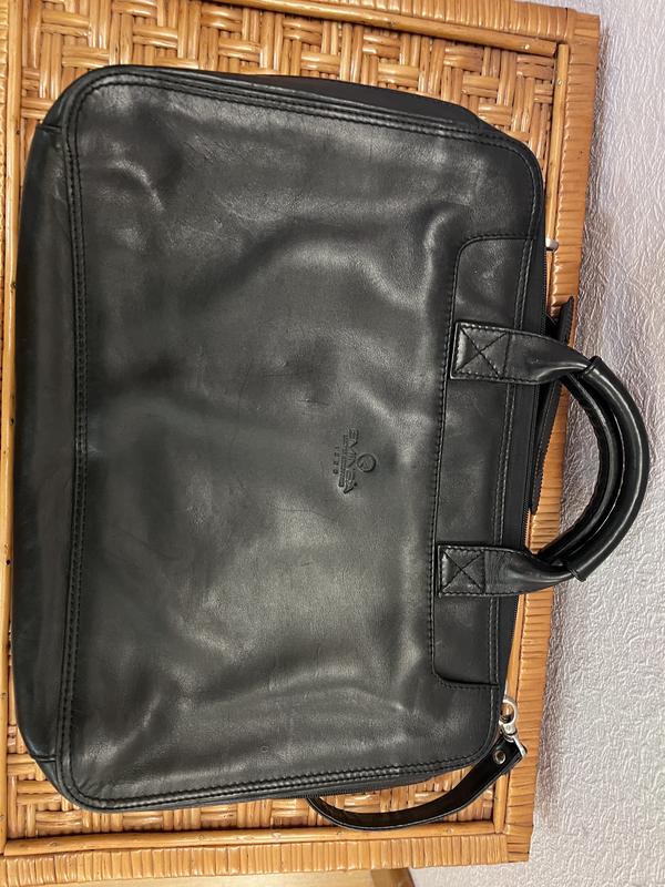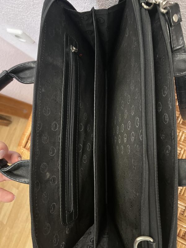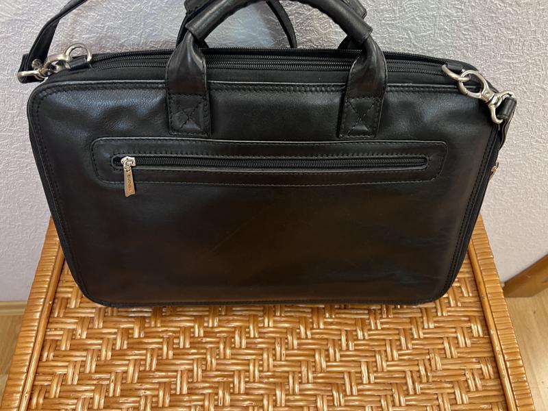 Шкіряна сумка для документів, можна використовувати під ноутбук. Багато кишеньок, є ремінець, легка. Носилась пару разів