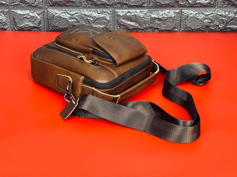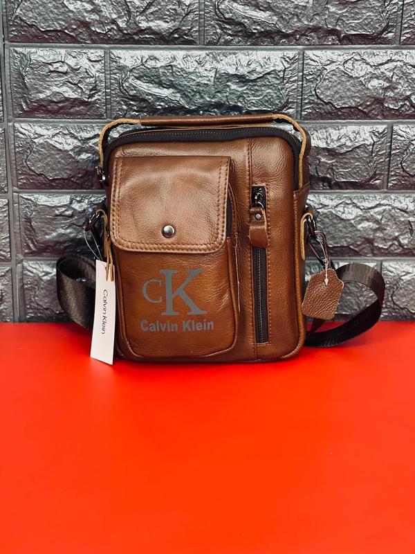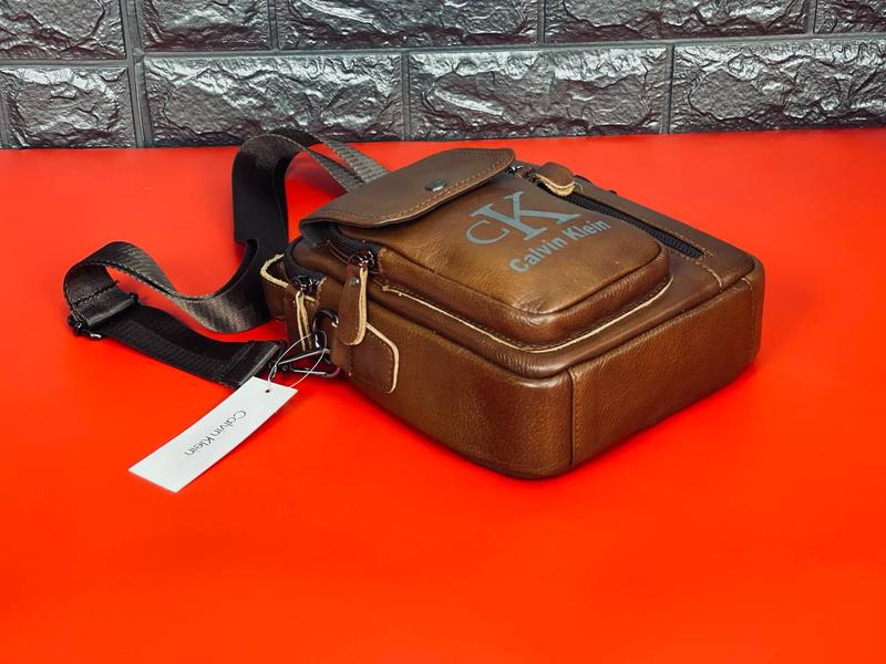 Мужская стильная кожаная сумка барсетка через плечо Calvin Klein коричневая сумка Келвин Кляйн Высота 24 см Ширина 20 см Глубина 9 см