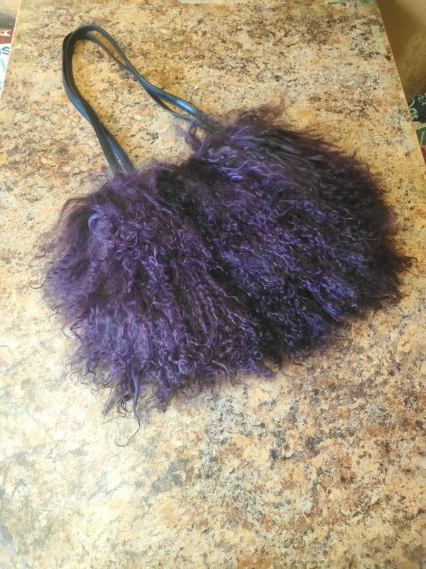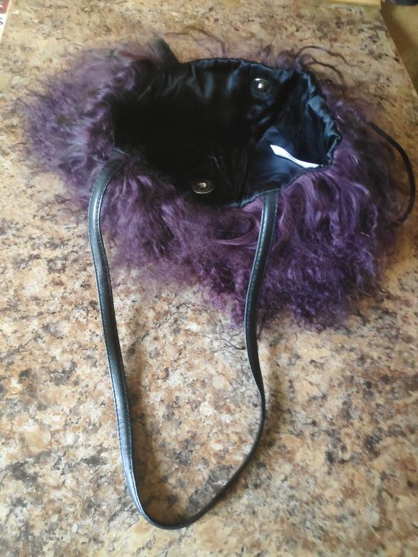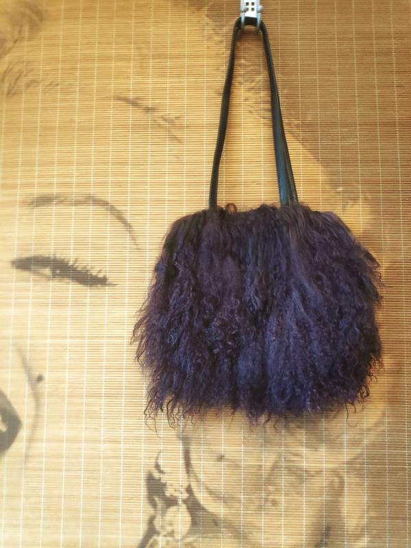 Сумочка на плече з натурального хутра лами/квадратної форми/має одне відділення/на полкладке/застібається на кнопку магнит /відтінка баклажан/від британського бренда M&S
