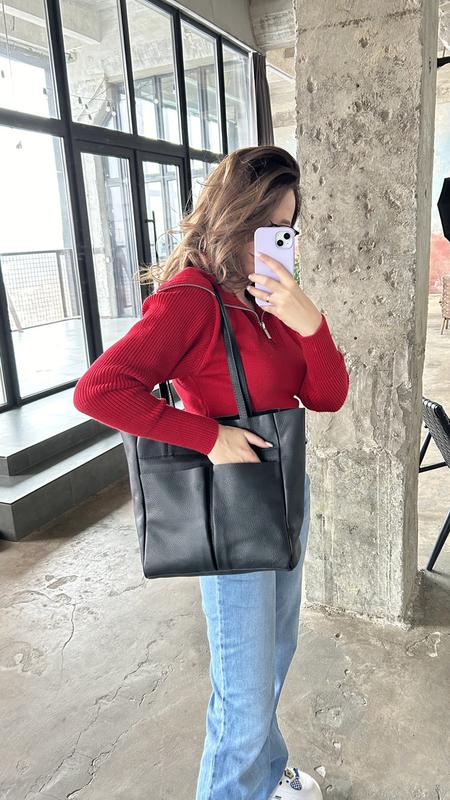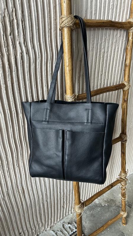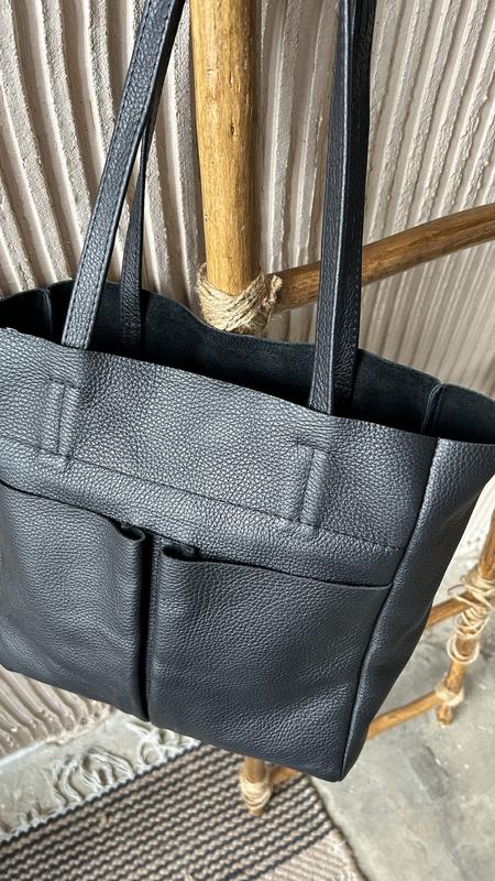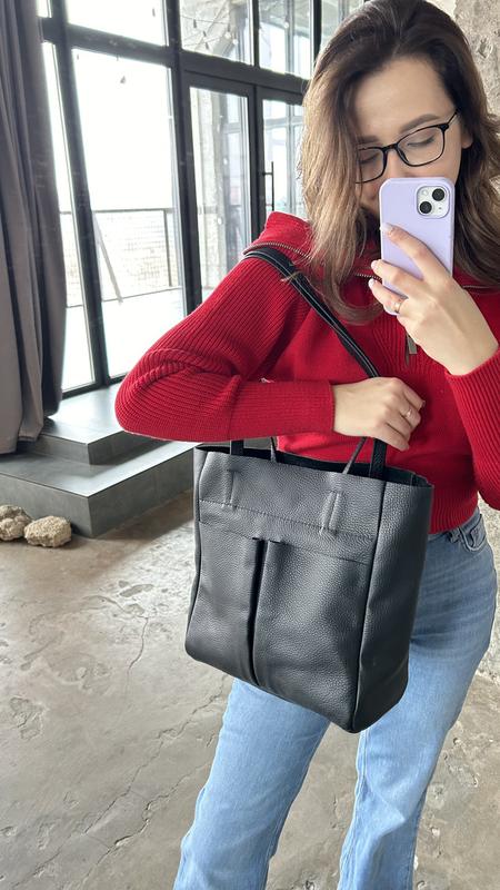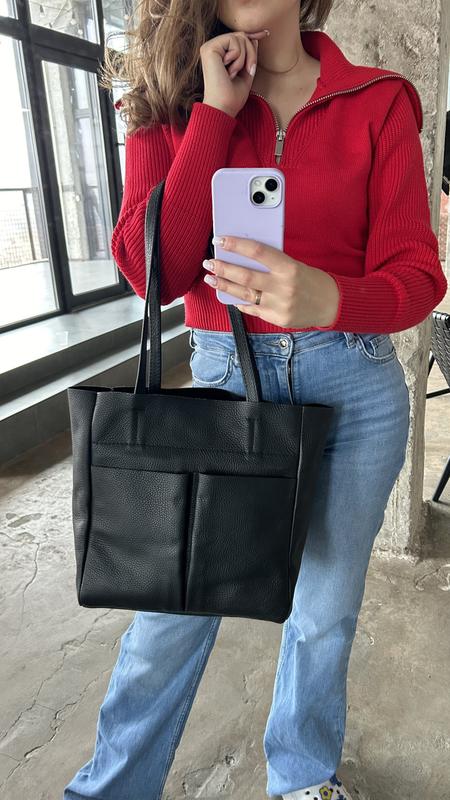 Жіноча шкіряна сумка шопер чорна Сумка з натуральної шкіри з кишенями