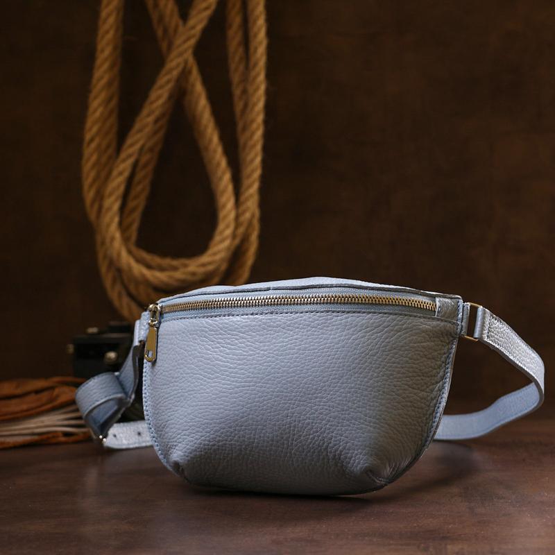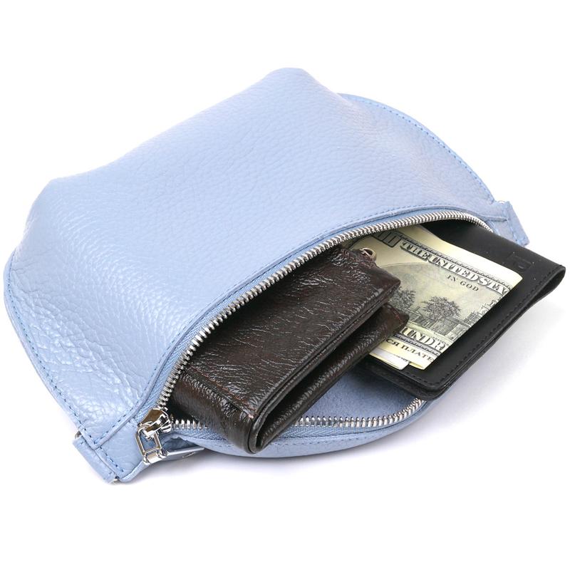 Стильна красива жіноча сумка на пояс у ніжному блідо-блакитному кольорі та