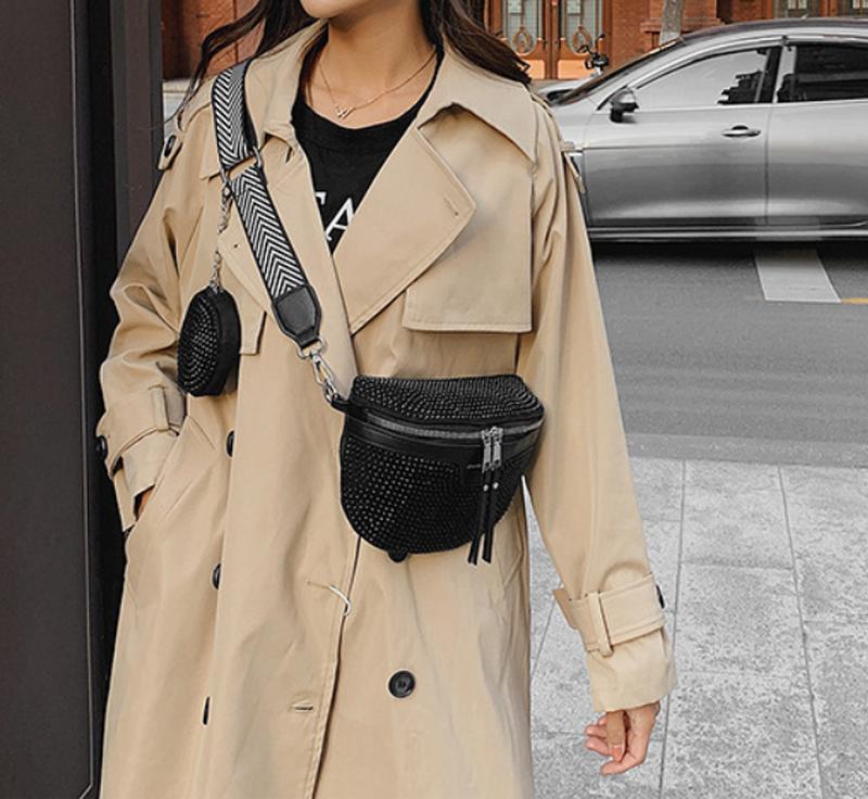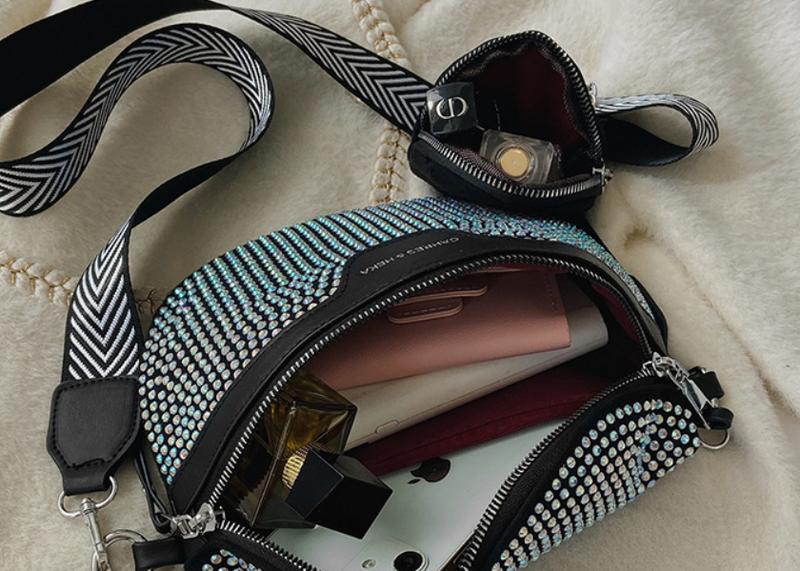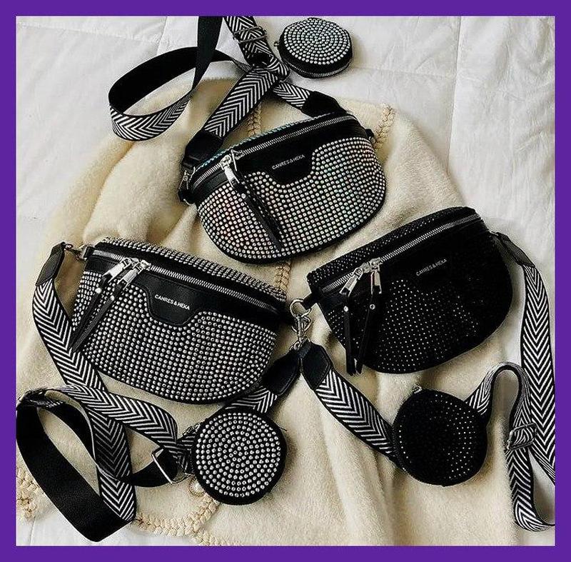 Жіноча сумка бананка на грудях зі стразами, міні сумочка бананка з камінцямиХарактеристики: Матеріал: екошкіра; Висота: 16 см; Довжина: 23 см; Глибина: 10см; Якісна металічна фурнітура.