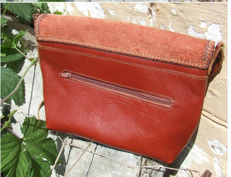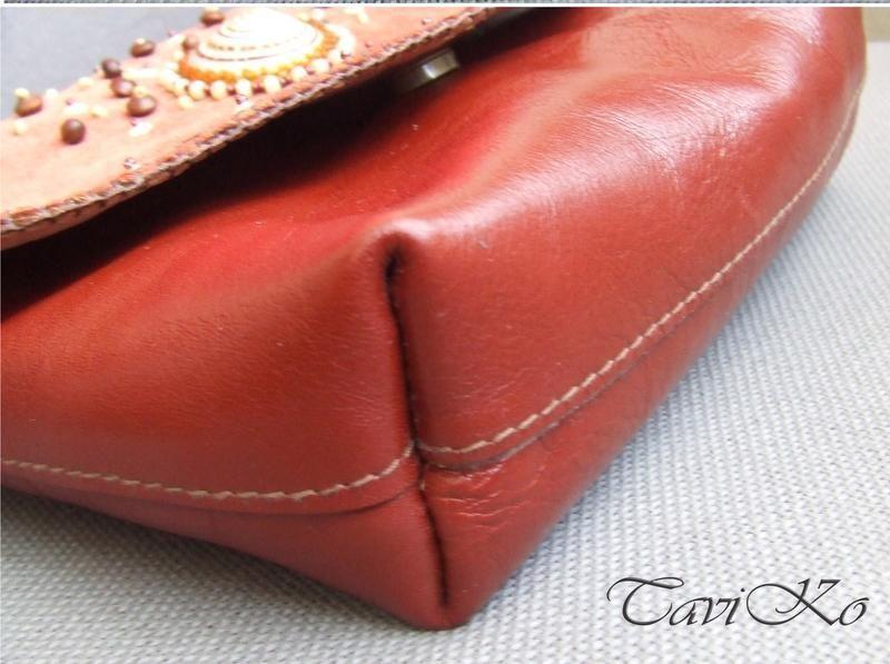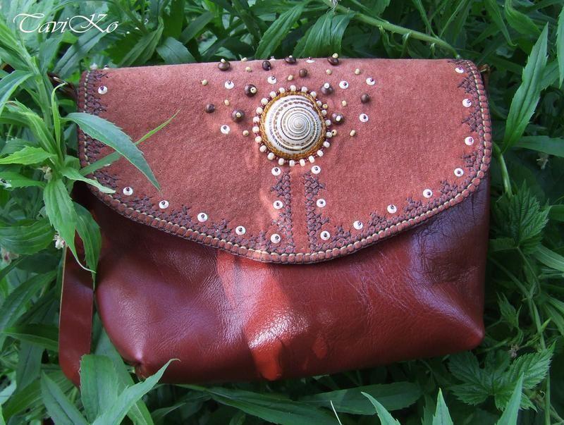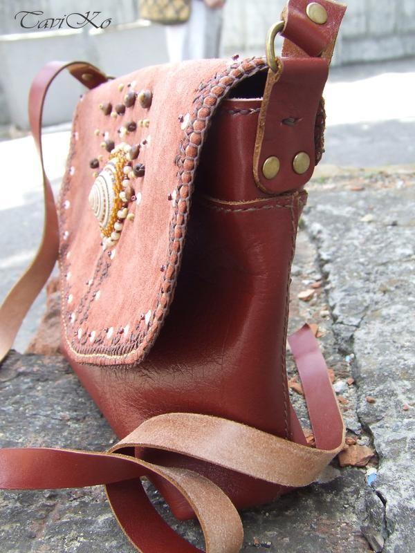 Сумочка зшита з італійської шкіри ВРХ FORINI-Vegetale рослинного дублення кольору віскі. Клапан зроблений з свинячого замша, прикрашеного вишивкою бісером, паєтками та вишивкою вощеного ниткою. Сумочка за кольором яскрава і насичена, але не кричущий. Зовнішня поверхня шкіри оброблена професійними засобами для шкіри і захистом від вологи. Сумочка має досить пристойний розмір - 25*17*6см, і в той-же час виглядає цілком мініатюрно. .На тильній стороні сумки є кишеня на блискавці. Закривається сумка на магнітну кнопку. Всередині підклад з американського бавовни з відкритим кишенею. Ручка сумки регулюється від 105 до 125 см див. Колір фурнітури - бронза.