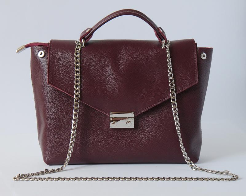 Стильна сумка портфель, натуральна шкіра - оксамитова підкладка всередині; - кишеня на блискавці на задній стінці; - закривається на блискавку і замок; - в комплекті ланцюжок Розмір 22*26*8 см