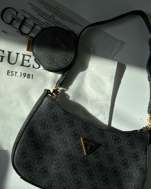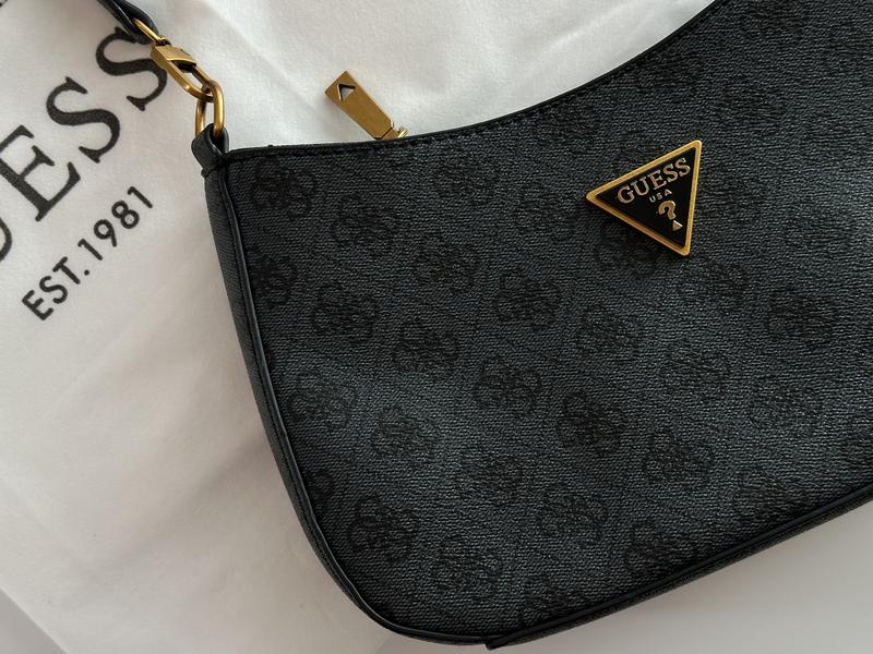 Жіноча маленька чорна сумка з ременем через плече guess🆕 стильна сумка