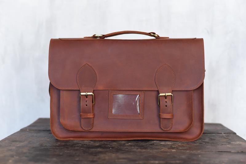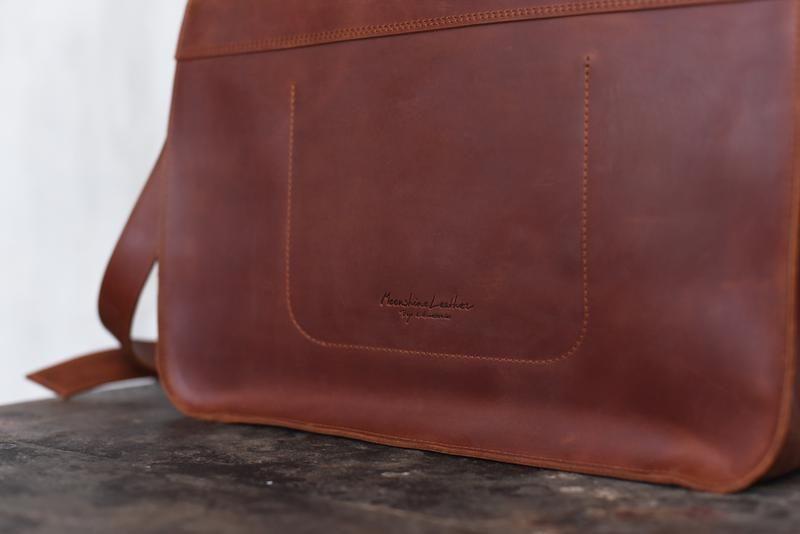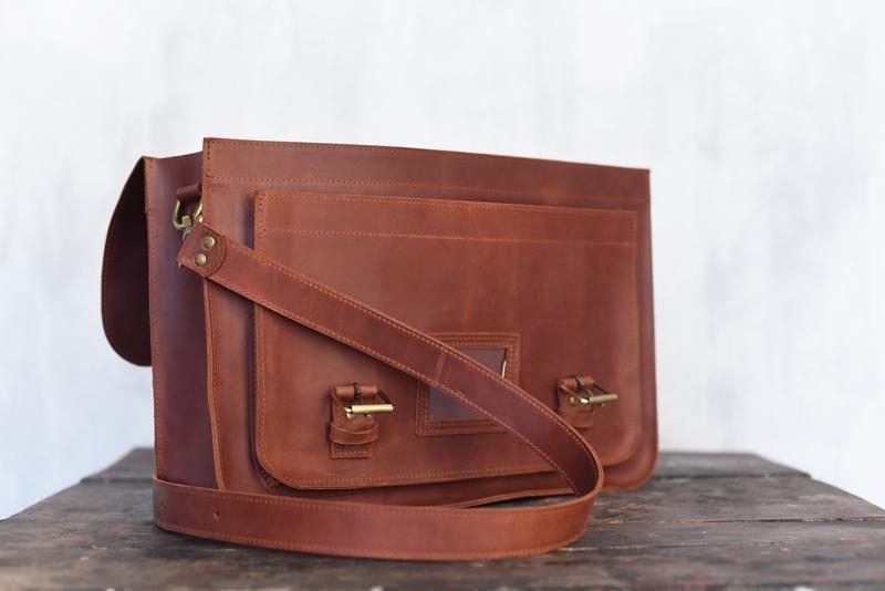 Чоловічий шкіряний портфель ручної роботи, виготовлений з натуральної шкіри рудого кольору. • Одне загальне відділення; • Внутрішній кишеню для дрібниць; • Великий зовнішній кишеню; • Регульована довга шлейка; • Розміри 40х27х10 див. Модель може бути виконана в різних кольорах.