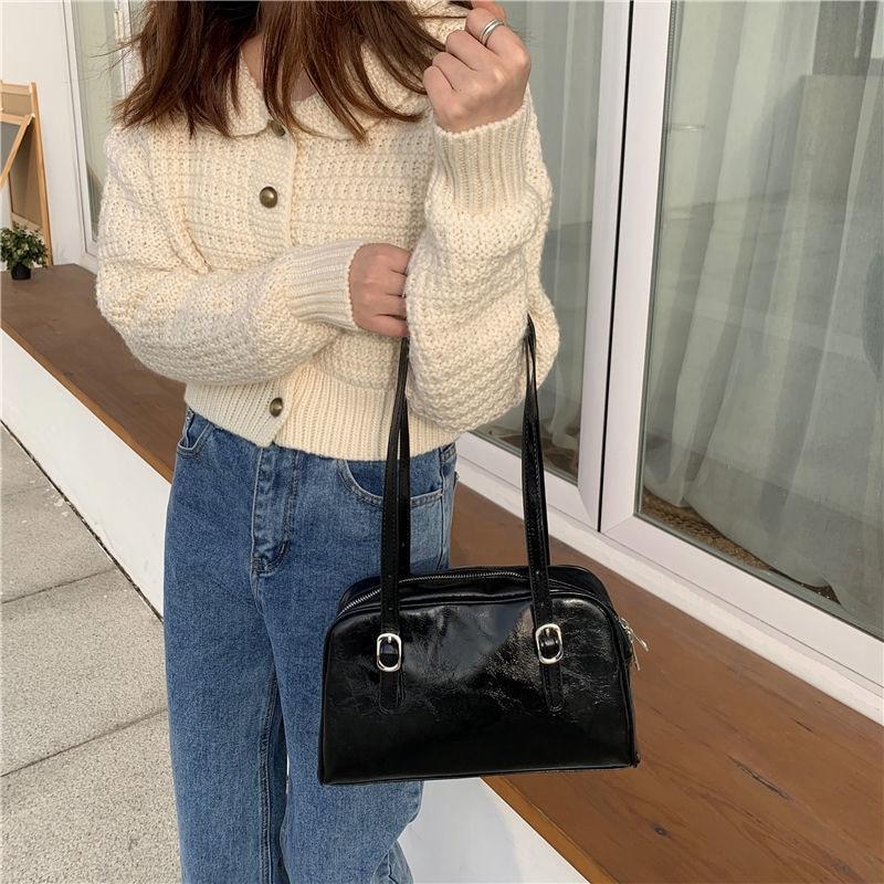 🔸Трендова сумочка саквояж👜 чорного кольору⠀🔸 PU шкіра, на підкладочці з кишенькою, застібка блискавка