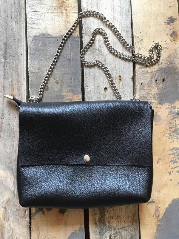 Чорна шкіряна сумка на металевому ланцюжку, сумка кроссбоди, через плече